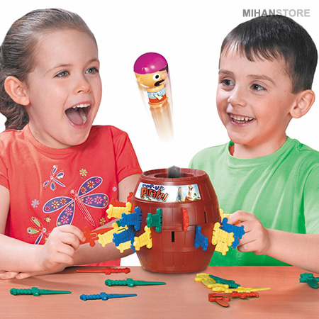 این یک بازی شانسی است که می توانید با آن شانستان را امتحان کنید!بازی دزد دریایی 2 الی 4 نفره است و یک بازی مهیج و مفرح برای کودکان شماست زیرا هر کودکی با دیدن یک دزد دریایی که از بشکه به بیرون می پرد بسیار سرگرم و هیجان زده می شود.