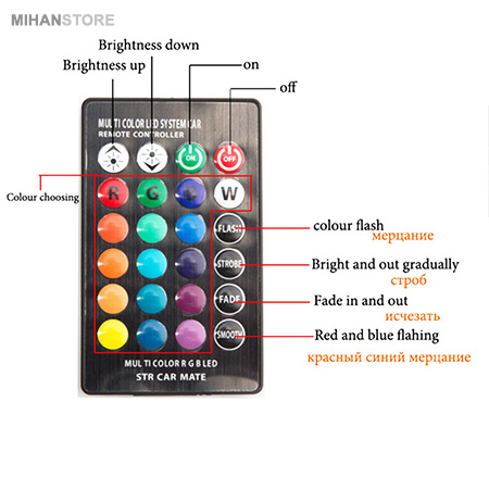 لامپ خودرو مدل Multi Color قابل‌ نصب برای انواع چراغ کوچک, چراغ پلاک و کلیه سوکت های سکن با پایه آریایی دارای ریموت برای تغییر رنگ‌های لامپ و یا روشن و یا خاموش کردن و یا کم و یا زیاد کردن و حالت چشمک‌زن نور لامپ‌ها را دارد و مناسب برای انواع خودرو سواری و سنگین و همچنین موتورسیکلت می‌باشد. لامپ خوردو مدل Multi Color با لامپ‌های LED شش عددی باروکش ژله‌ای با نوردهی بسیار عالی و ریموت کنترل جهت تغییر رنگ و حالت‌های نور با تولید گرمای بسیار ناچیز و مصرف بسیار کم یکی از محصولات حرفه‌ای و بسیار پرطرفدار در نورپردازی خودرو است.