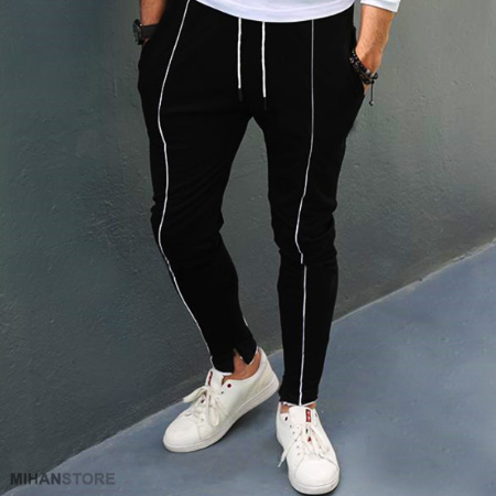 دارای یک خط باریک سفید رنگ در جلو شلوار