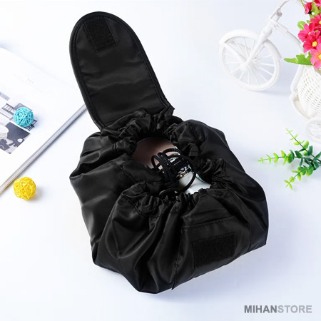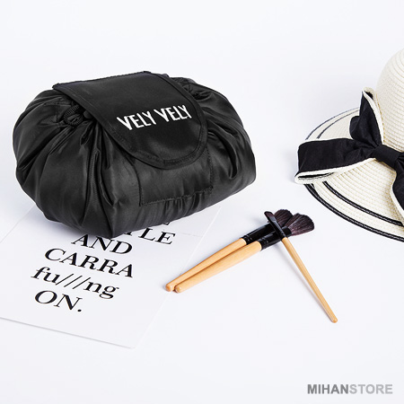 کیف لوازم آرایشی مسافرتی Vely Vely مناسب برای کالاهای بهداشتی و آرایشی ، جواهرات و لوازم جانبی سفر می باشد. کیف لوازم آرایشی مسافرتی Vely Vely بسیار جادار و سبک در طرح کیسه ای طراحی شده است. شما یه راحتی می توانید تمام لوازم آرایشی خود را در آن قرار دهید. طراحی گرد آن به هنگام باز کردن کیسه امکان دسترسی آسان و سریع لوازم مورد نیازتان را در یک نگاه کلی به شما می دهد.این کیف لوازم آرایش قابل شستشو در ماشین لباسشویی است.امتیاز اصلی این مدل داشتن طراحی کارآمد و جادار بودن هست و میتوانید به راحتی همه ی وسایل آرایشی و زیورآلاتتان را درون کیف قرار بدهید و همیشه و همه جا همراه خود داشته باشید.