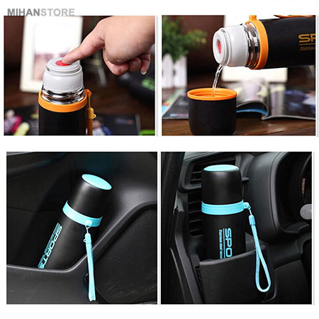 از لحاظ ظاهر، این محصول دارای ظاهری مدرن و متفاوت نسبت به نمونه های کلاسیک، و با یک طراحی شکیل تر، مطابق سلیقه ی افراد خاص پسند است. روش نوشیدن مایعات در آن بسیار ساده و به وسیله ی درب آسان نوش تعبیه شده روی عایق مهیا شده است و بدین ترتیب علاوه بر سهولت در نوشیدن بدون نیاز به باز کردن پیج دهانه، نشتی و ریزش مایعات نیز به صفر می رسد.  فلاسک نیم لیتری استیل Sports دارای یک دسته ی متحرک جمع شونده همراه با یک بند است که علاوه بر سهولتِ حمل و نقل، فضای کمی  را نیز اشغال می کند و طراحی درب محصول به شکل یک لیوان بزرگ، علاوه بر دسترسی دائمی و حمل آسان، نیاز شما به لیوان مجزا را مرتفع می کند.با توجه شروع شدن فصل تابستان و شروع تعطیلی ها ،بسیاری از خانم ها و آقایان ترجیح میدن که از این تایم برای رفتن به باشگاه استفاده کنند و یا حداقل پیاده روی رو از دست ندهند. امروز به شما فلاسک استیل رو به معرفی میکنیم که برای همراه داشتن انواع نوشیدنی های گرم و سرد بسیار مناسبه و چون ابعاد خوبی داره میتونه هر جایی همراهتون باشه . درب رویی این فلاسک به صورت یک لیوان دسته دار هست که شما رو از همراه داشتن لیوان جداگانه بی نیاز میکنه . ظرفیت این فلاسک 500 میلی لیتر هست و راه خروج مایعات به صورت ضامنی هست که استفاده از اون رو راحت میکنه ...