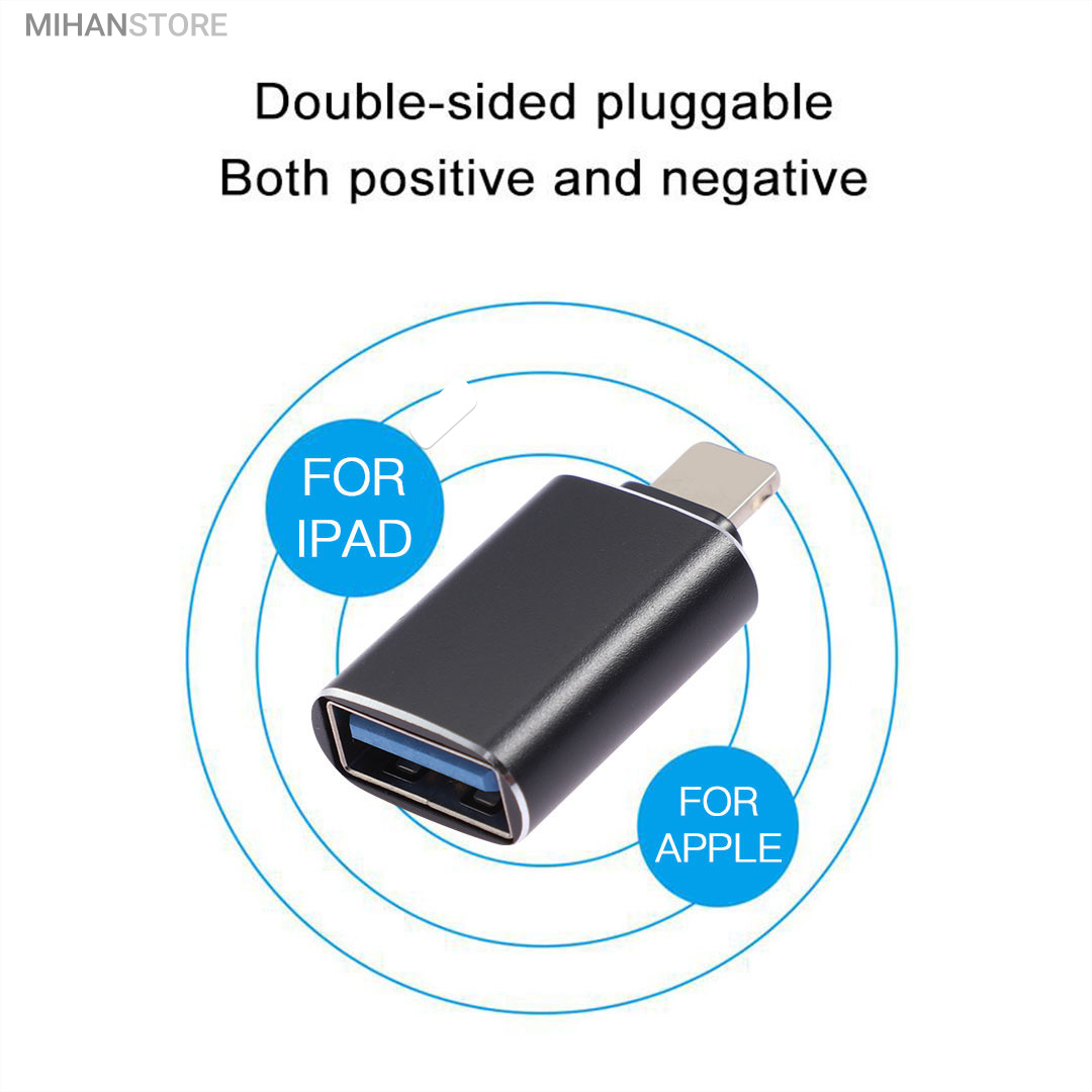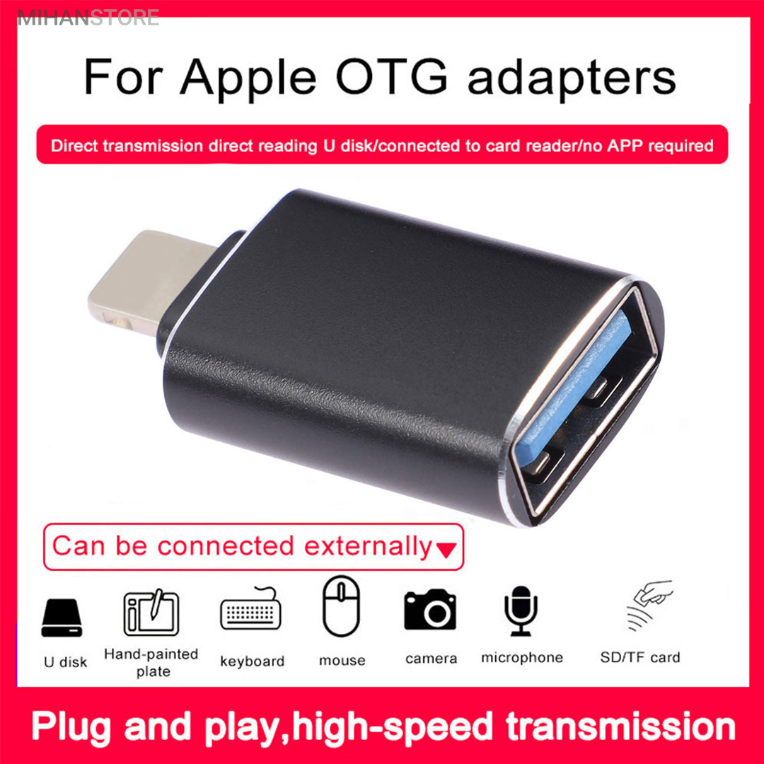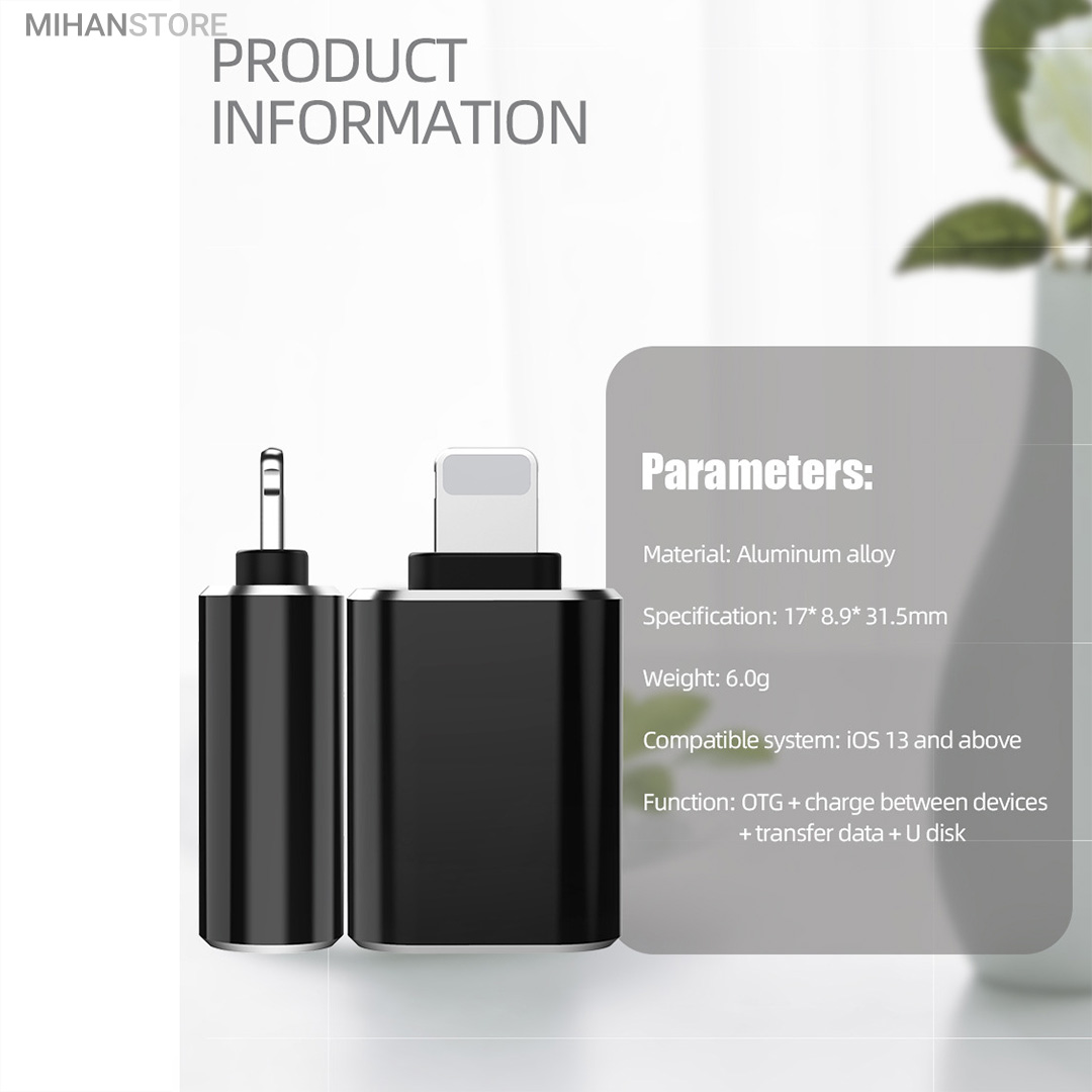 OTG لایتنینگ یک مبدل بدون نیاز به نصب نرم افزار، مخصوص گوشی و تبلت های اپل با سرعت بالاست، از آنجایی که این محصول به تازگی به تولید رسیده و با تکنولوژی روز هماهنگ است میبایست ورژن IOS دستگاه از 13 بالاتر باشد. جنس بدنه این OTG الومینیومی و سخت است، بدون نصب هیچ گونه نرم افزاری با سرعت بسیار بالایی کار میکند و کارکردن با آن بسیار ساده است، حداکثر توان خروجی این مبدل 200 میلی آمپر و سرعت انتقال داده آن به لطف تکنولوژی USB 3.0 به عدد واقعی 625MB/s میرسد. همچنین با داشتن این OTG میتوانید دستگاه هایی مانند فلش مموری، هارد اکسترنال، هاب یو اس بی، موس، کیبورد، دسته بازی و دوربین عکاسی را به موبایلتان متصل کنید و حتی از دستگاه های دیگر که قابلیت شارژ کردن دارند(مانند: موبایل ها و یا اسپیکر هایی که قابلیت پاوربانک دارند) برای شارژ کردن موبایلتان استفاده کنید، هچنین دیگر نیازی نیست حافظه دوربین را خارج کنید! میتوانید با اتصال مستقیم مبدل به دوربین از طریق کابل تمامی عکس های ذخیره شده را در موبایلتان نگاه کنید، حذف کنید و یا به حافظه گوشی منتقل کنید و یا تصاویر و فیلم های گرفته شده با موبایل خود را به فلش یا هارد اکسترنال منتقل نمایید.