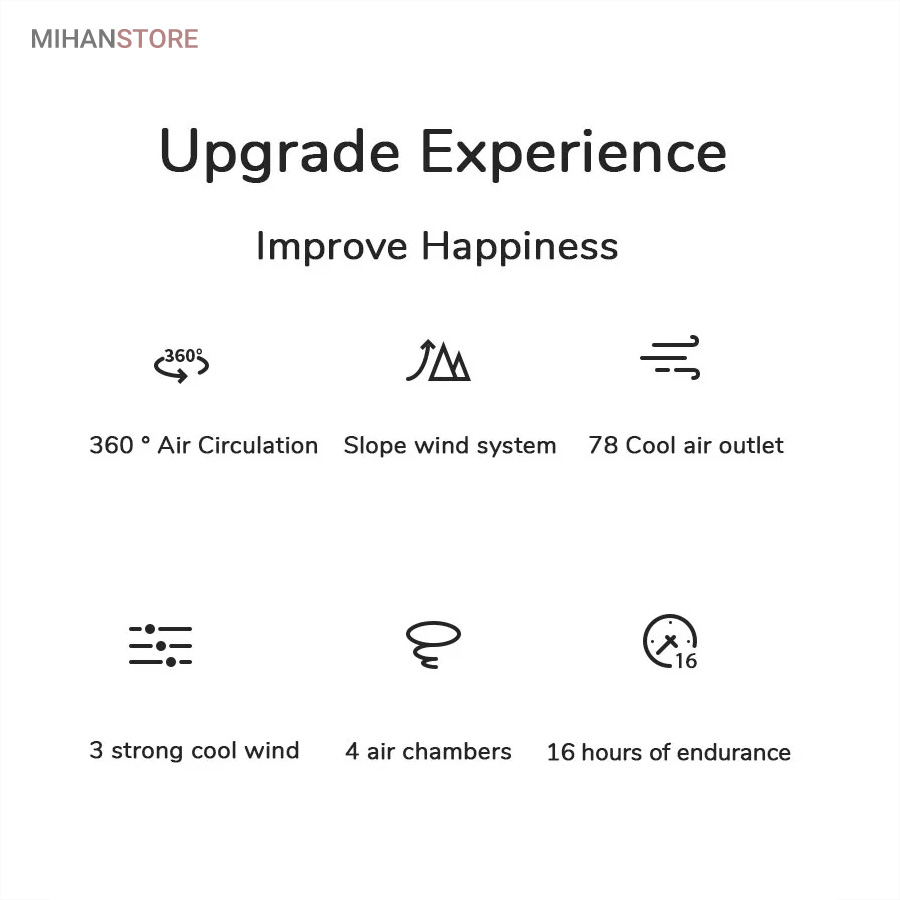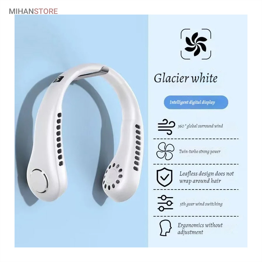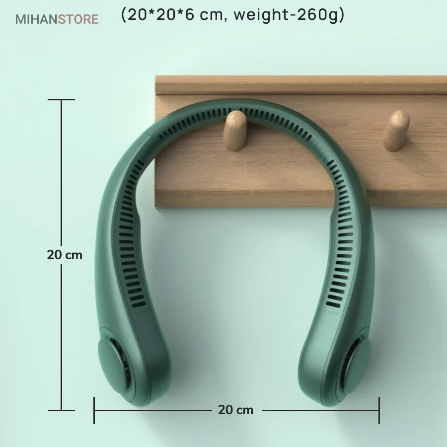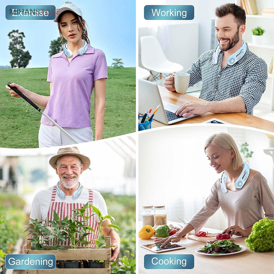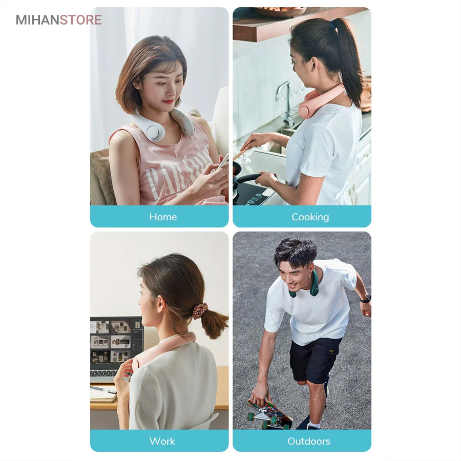 می‌تواند برای ورزش، در هنگام گردش و تفریح، در سفرها و حتی در محل کار شما مورد استفاده قرار بگیرد. از قابلیت‌های جالب این فن این است که می‌توانید به کمک دکمه‌ای که بر بدنه آن تعبیه شده است؛ دمای فن را در سه حالت خنک کننده کم، متوسط و زیاد تنظیم کنید. با فشردن تنها یک دکمه دستگاه شروع به کار می‌کند و با همان دکمه می‌توانید دما را کم و زیاد کنید. منبع تغذیه این فن باتری است وبه وسیله کابل Micro USB می‌توانید این دستگاه را شارژ کنید. از نظر طراحی این دستگاه بسیار زیبا طراحی شده و شما را به یاد هدست‌ می ‌اندازد. بنابراین می‌توانید به همان صورت آن را دور گردنتان بیندازید و از آن استفاده کنید. جنس بدنه این فن هم سیلیکونی است و هنگامی که در طولانی مدت آن را دورگردن بیندازید شما را اذیت نخواهد کرد.