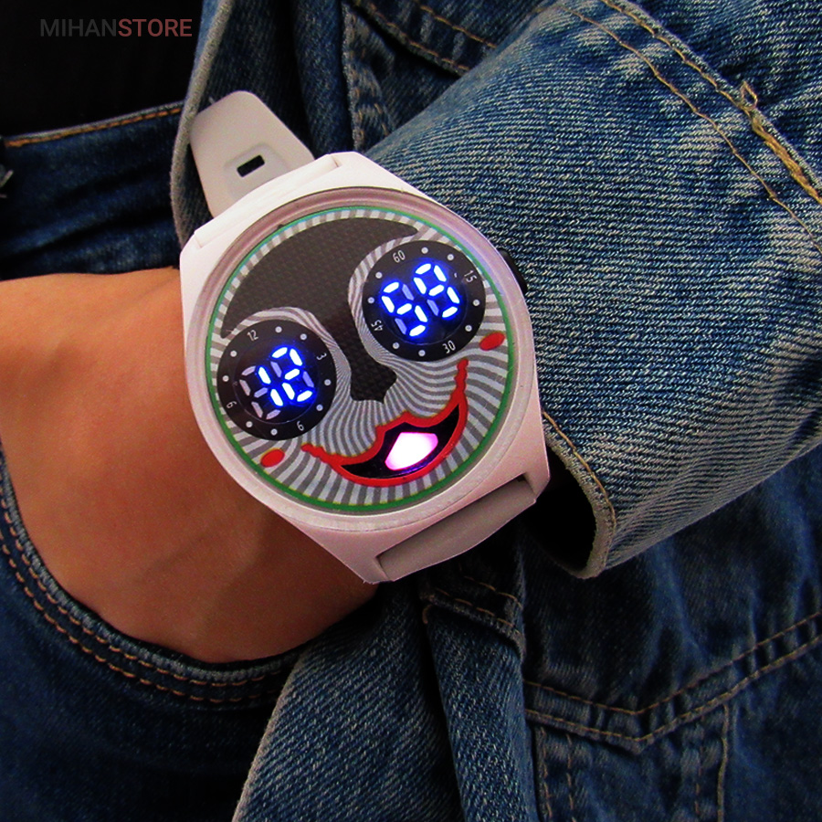 ساعت ضدآب JOKER دارای صفحه ی نمایش دیجیتالی بوده و صفحه بسیار زیبا و شفاف که با فشار دادن دکمه کنار ساعت صفحه نمایش به شکلی زیبا پدیدار می شود، همزمان با روشن شدن صفحه، چراغ های LED آبی رنگ به کار رفته در داخل صفحه قابل درک خواهد بود و ساعت را به نمایش در می آورد، این ساعت مچی دارای تقویم روز شمار نیز می باشد که به صورت دیجیتالی به نمایش پدیدار می شود. این ساعت ضد آب است و در هنگام استحمام میتوانید با خیال راحت از این ساعت استفاده کنید. این ساعت با بند های سیلیکونی در 5 رنگ جذاب که مناسب سلیقه همه هست ارایه شده و هنگام ثبت سفارش می توانید رنگ مورد نظر را انتخاب کنید.