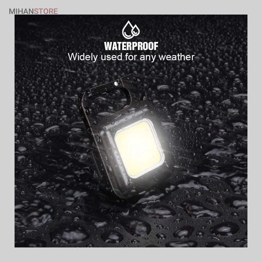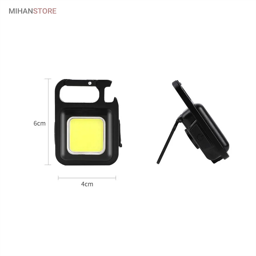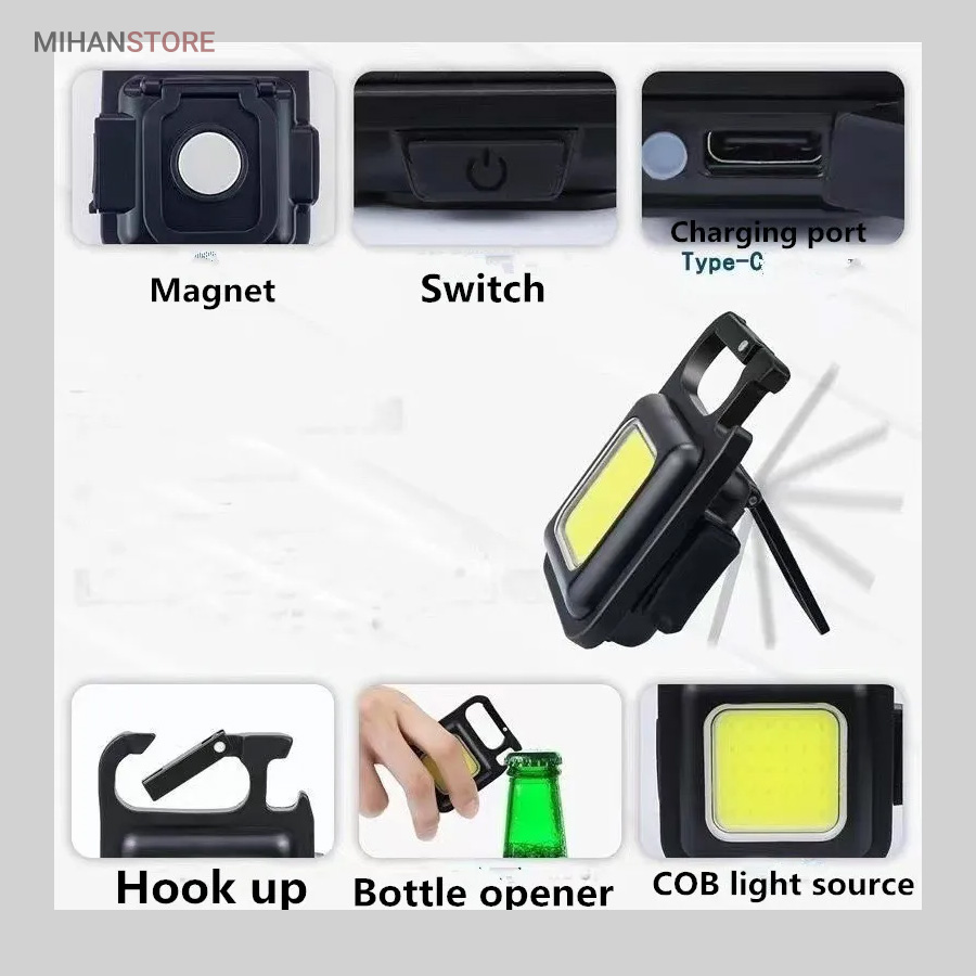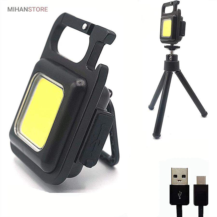 وقتی زمان شارژ  مجدد فرا می رسد، کافی است آن را به هر منبع تغذیه USB وصل کنید. این چراغ  قوه شارژی USB توسط یک باتری داخلی قابل شارژ با ظرفیت 500 میلی آمپر  ساعت، کابل شارژ تایپ C به USB تغذیه می شود. معمولاً حدود 2 ساعت طول  می کشد تا کاملاً شارژ شود. پایه آهنربایی  قوی و دسته قابل چرخش به شما امکان می دهد در حین کار دستان خود را رها  کنید. طراحی آهنربا به لامپ اجازه می دهد تا به هر فلزی متصل شود و دسته  قابل تاشو 180 درجه اجازه می دهد تا لامپ در زوایای مختلف قرار گیرد یا در  مکان های خاصی آویزان شود.این چراغ قوه  جاکلیدی می تواند نورهایی با حداکثر 800 لومن ساطع کند. این یک نور روشن با  زاویه گسترده ارائه می دهد. LED فنی بزرگ COB اجازه می دهد تا از این چراغ  به عنوان چراغ کار کوچک و چراغ اضطراری استفاده شود. چراغ قوه قابل حمل دارای کارابینی است که به راحتی به حلقه کلید یا کیف وصل می شود و در  برابر آب و ضربه مقاوم است. از طرف دیگر، بطری بازکن خوبی است. شما می  توانید از آن در سناریوهای مختلفی مانند کمپینگ، پیاده روی سگ، جستجوی  چیزها، تعمیر استفاده کنید.