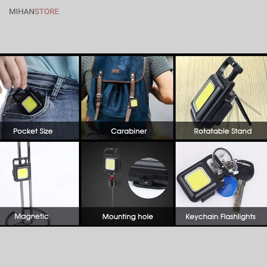 مینی چراغ پر قدرت چندکاره COB محصول کاربردی برای استفاده در کمپینگ و مسافرت های بیرون شهری حتی داخل منزل است. این مدل پروژکتور با طراحی و کیفیت عالی خود در مسافرت ها و گردشگری و همچنین درموارد اضطراری همچون نبودن برق, به سهولت مورد استفاده قرار میگرد. این پروژکتور COB با سه حالت نوردهی بصورت ثابت (پر نور , کم نور) و چشمک زن (SOS) محیط اطراف خود را به طور کامل روشن می کند. در پشت این محصول یک آهنربا پر قدرت و یک دسته تعبیه شده است که طراحی آهنربا به این محصول اجازه می دهد تا به هر فلزی متصل شود شما میتوانید به سرعت آن را به یک سطح فلزی، حتی وارونه (مثلاً به سقف یا کاپوت ماشین) متصل کنید و دسته قابل تاشو 180 درجه اجازه می دهد تا لامپ در زوایای مختلف قرار گیرد یا در  مکان های خاصی آویزان شود ومحیط را کاملا روشن کند.
