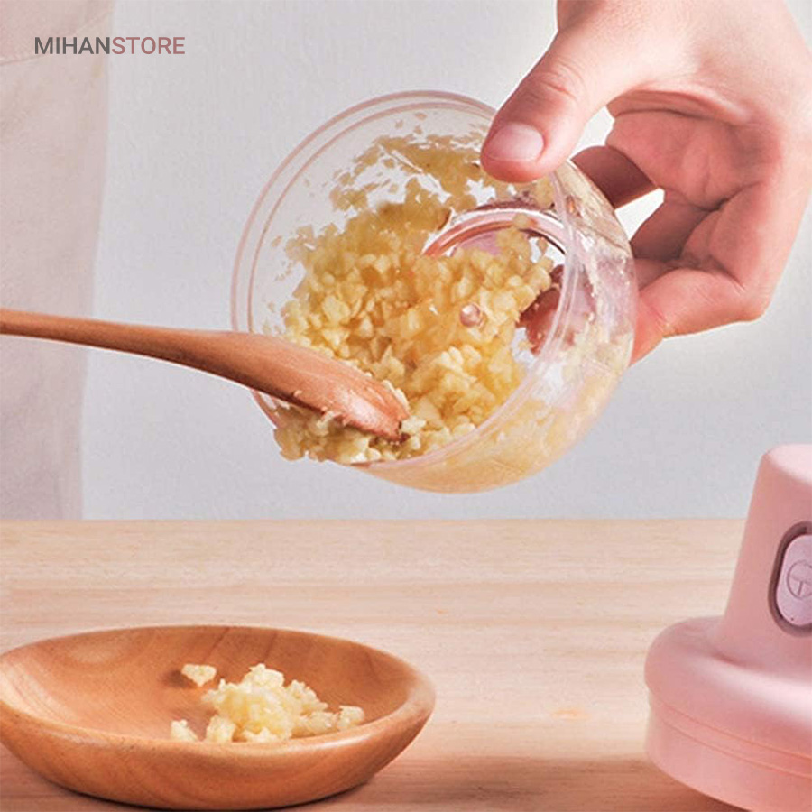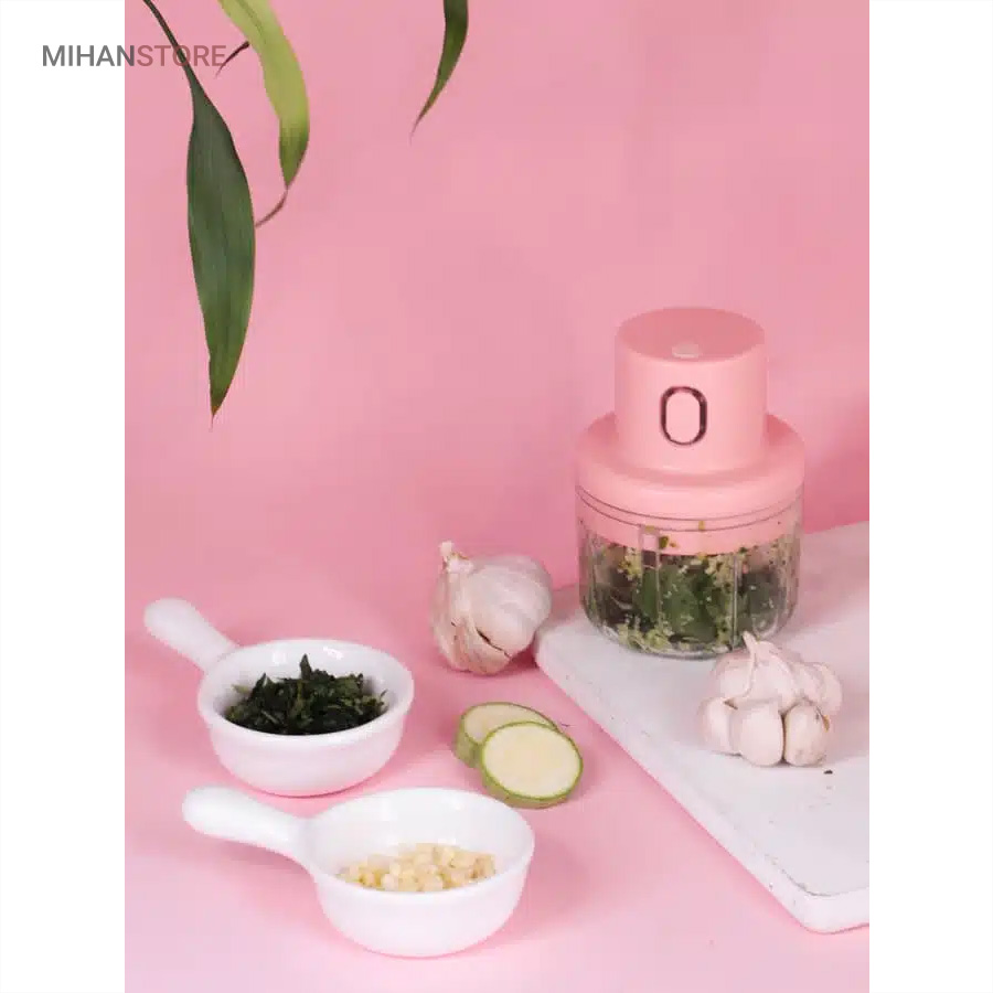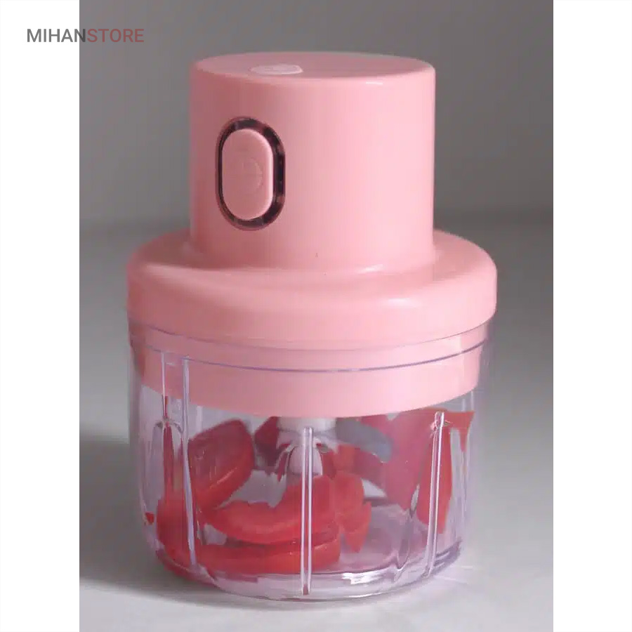 مینی خردکن شارژی یک خردکن 3 تیغه تیز است که به عنوان یک وسیله کاربردی برای خرد و میکس کردن سیر ، زنجبیل ، فلفل ، هویج ، سبزیجات ، پیاز و موارد دیگر بسیار مناسب است. طراحی عملکرد کلید لمسی مینی خردکن شارژی باعث می شود دست شما آزاد باشد تا موقع کار به کارهای دیگر خود برسید.این دستگاه با یک کابل USB و با ۳ ساعت شارژ ، می تواند از عمر طولانی باتری تا ۳۰ روز و استفاده گاهی اوقات لذت ببرید. این خردکن شارژی رو میتونید مسافرت یا کمپینگ هاتون هم همراه ببرید و از دست خرد کردن راحت بشید.این دستگاه ضدآب بوده و آب از محفظه زیرین به بالا و موتور نفوذ نمیکنه  این دستگاه از پلاستیک ABS ساخته شده و بسیار مقاوم بوده و همچنین تیغه ها ضدزنگ بوده.
