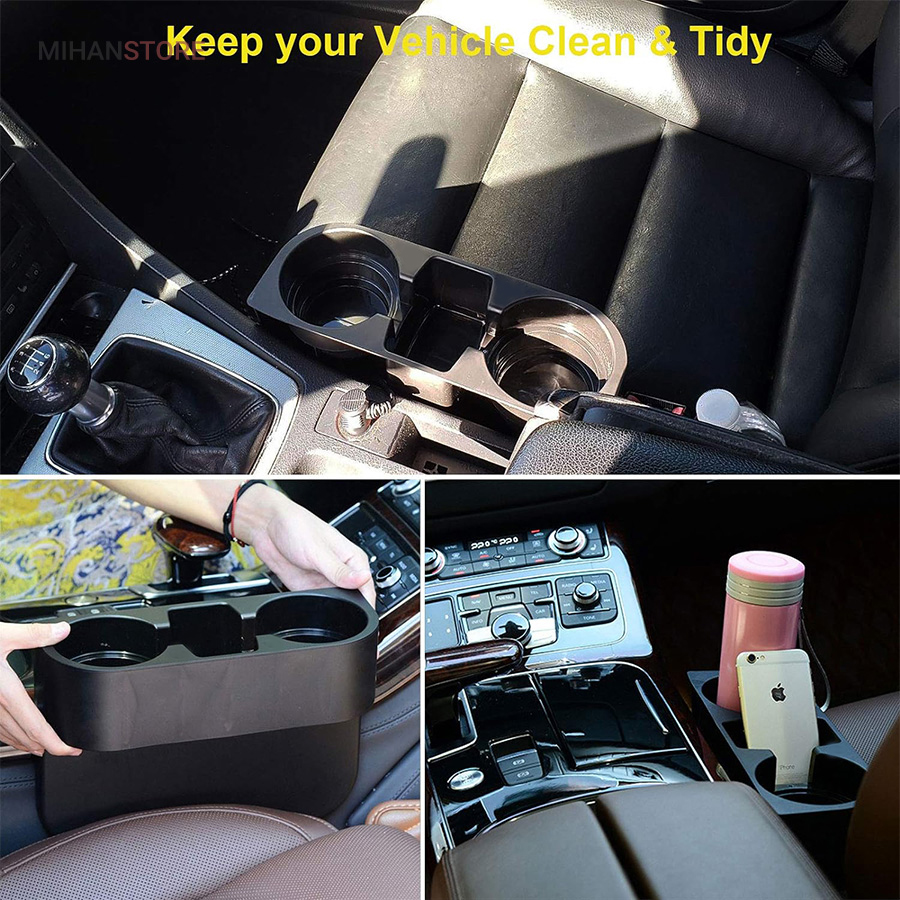 کنسول و جا لوازمی خودرو ابزاری حرفه ای برای استفاده از فضای بی مصرف بین صندلی و کنسول خودرو که باعث دردسر هم می شود و می توان از آن به بهترین شکل با این جالیوانی پرکرده و استفاده کرد.  علاوه بر جا لیوانی که شامل 2 عدد نگهدارنده لیوان است، می توان از محفظه وسط بین دو لیوان برای نگهداری وسایل مورد نیازی مانند: خودکار، موبایل، عینک آفتابی، قند و تی بگ و استفاده کرد.  این جا لیوانی کنسول ماشین به دلیل کشویی بودن در فضای بین صندلی و کنسول، قابلیت نصب روی اکثر خودروها را دارد.برای سفر همیشه به همراه داشتن چای و نوشیدنی می تواند خستگی سفر را کمتر کند و یا اگر جز افرادی باشید که بیشتر وقتتان را در ماشین می گذرانید احتمالا برای رفع خستگی تمایل به خوردن قهوه و یا نوشیدن چای دارید، اما مشکلی که برای اکثر افراد پیش می آید نداشتن یک جا لیوانی در خودرو است که مجبور می شوند لیوان را در دست گرفته و خطر سوختگی آن ها را تهدید کند.جا لیوانی کنسولی ماشین این مشکل را برطرف کرده و با نصب آسان به شما کمک می کند از فضای بلااستفاده بهترین بهره را ببرید و حتی آن را به راحتی جابجا کنید.