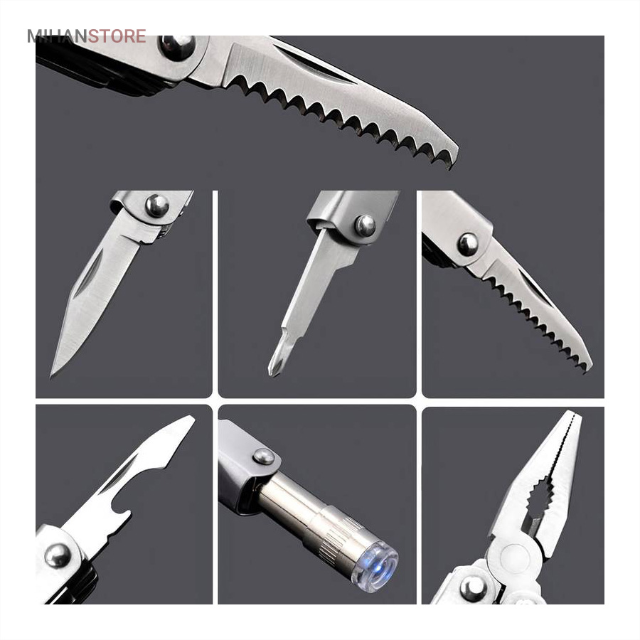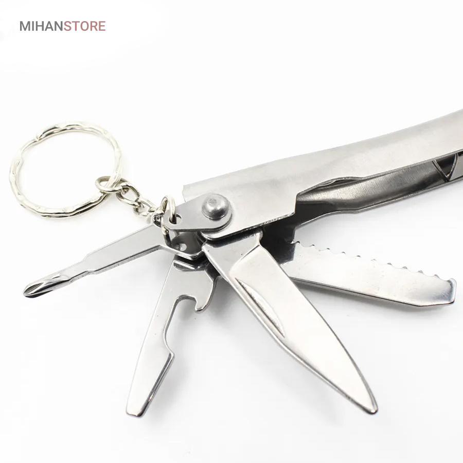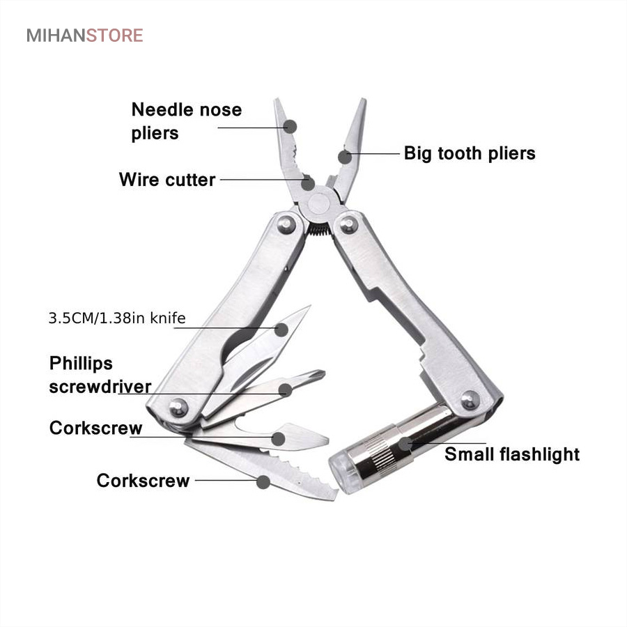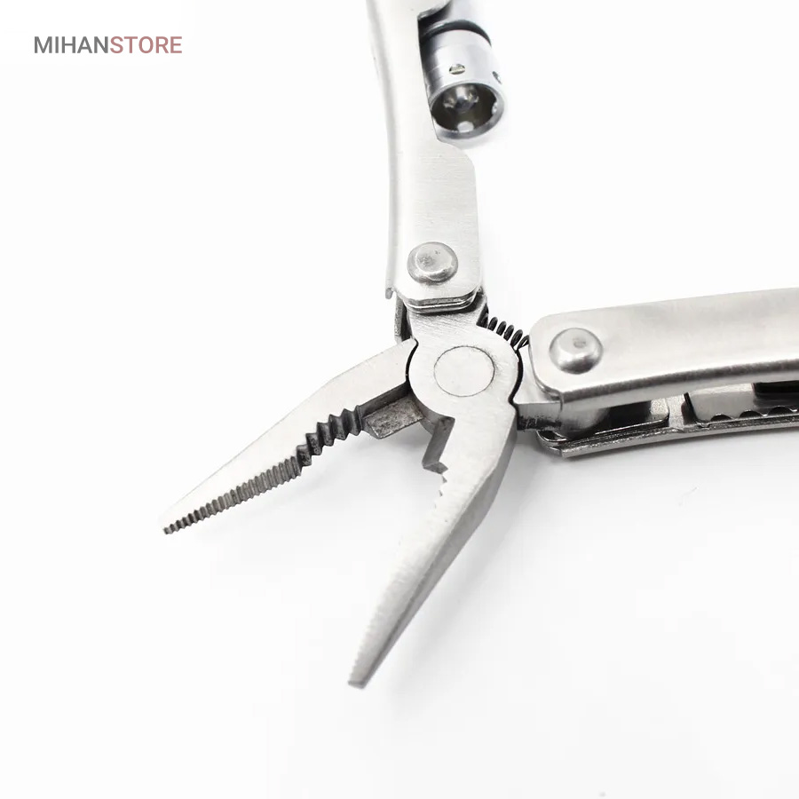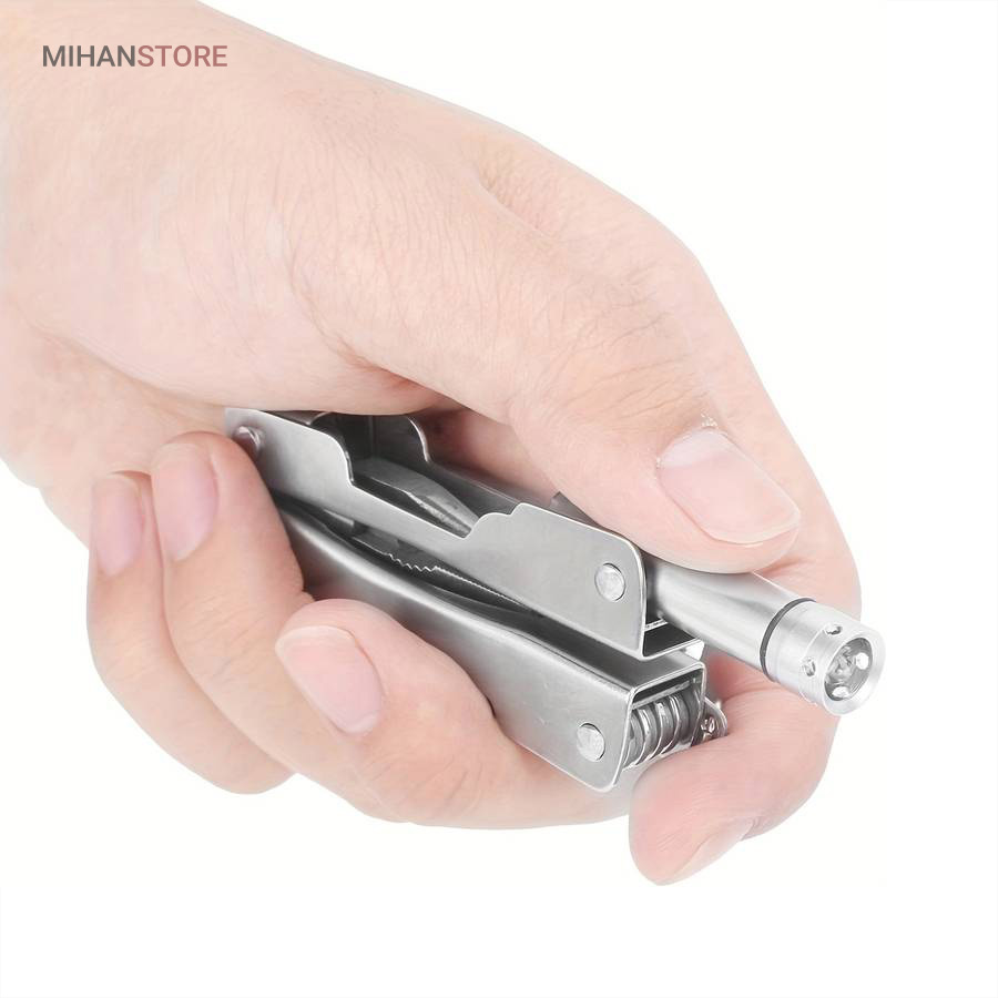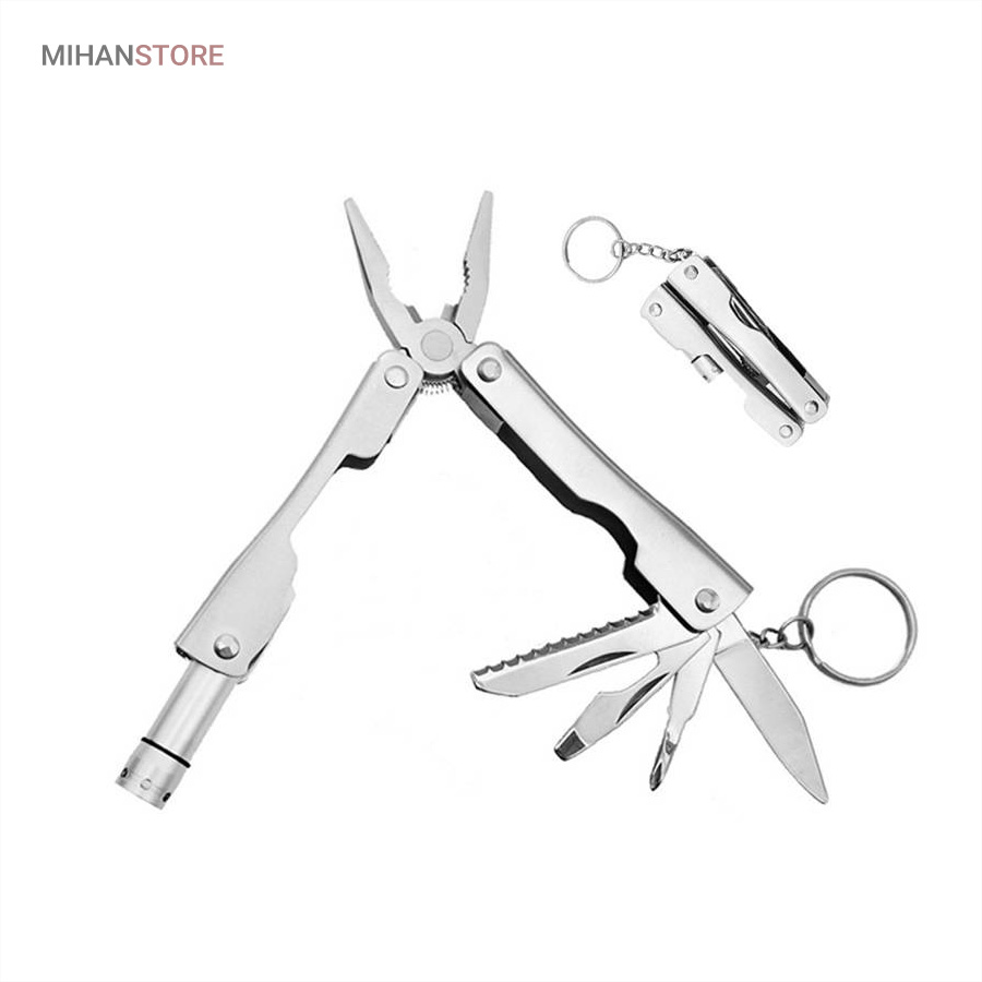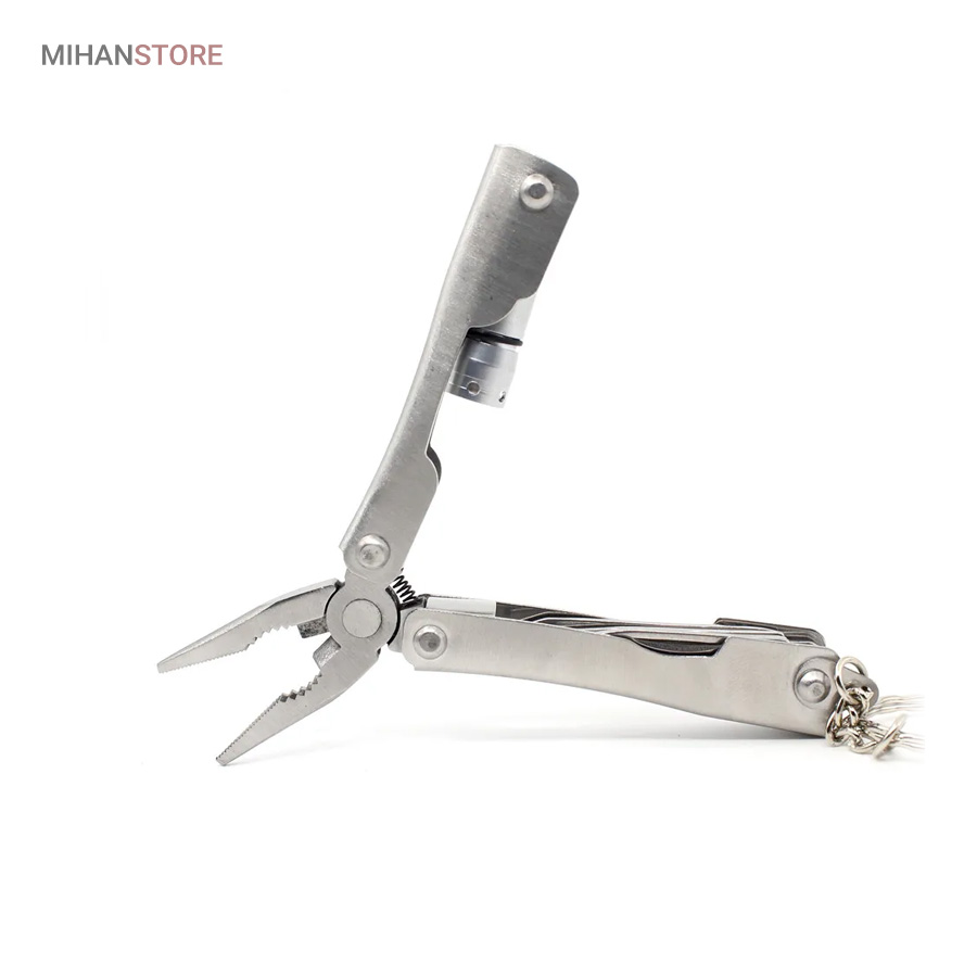 بسیاری مواقع در طول روز یا زمان سفر، به ابزار بسیار ساده‌ای مانند پیچ‌گوشتی، چاقو و… نیاز پیدا می‌کنید؛ ولی قطعا هیچ‌کس نمی‌تواند همه‌ی این ابزارها را در کنار خود داشته باشد. در چنین شرایطی یک مجموعه‌ابزار، بسیار کارآمد خواهد بود. این محصول ۷ ابزار با ۹ عملکرد دارد. از ابزارهای داخلی این محصول می‌توان به «در بطری باز‌کن» اشاره کرد که برای بازکردن در بطری نوشابه به شما کمک می‌کند. همچنین این محصول یک «تیغه چاقوی کوچک» دارد که برای آشپزی در زمان سفر کاربردی است. از دیگر ابزارها می‌توان به «اره» اشاره کرد که تقریبا تیز است و برای کارهای ظریف استفاده می‌شود. یک «پیچ‌گوشتی چهارسو» نیز در این مجموعه لحاظ شده است تا بتوان در صورت لزوم، با خیالی راحت از آن استفاده کرد. بدون شک کاربردی‌ترین ابزار این مجموعه «چراغ‌قوه‌» است. این چراغ‌قوه به صورت پیچی روشن و خاموش می‌شود و نور مناسبی برایتان تولید می‌کند. اصلی‌ترین ابزار این وسیله «انبردست» است که به‌نسبت اندازه‌اش، قدرت مناسبی دارد. قسمت پایینی انبردست نیز به دلیل تیغه‌هایی که دارد، مانند سیم‌چین عمل می‌کند. برای اینکه بتوانید این محصول را با راحتی بیشتری حمل کنید، کیف کوچکی نیز همراه آن عرضه شده است.