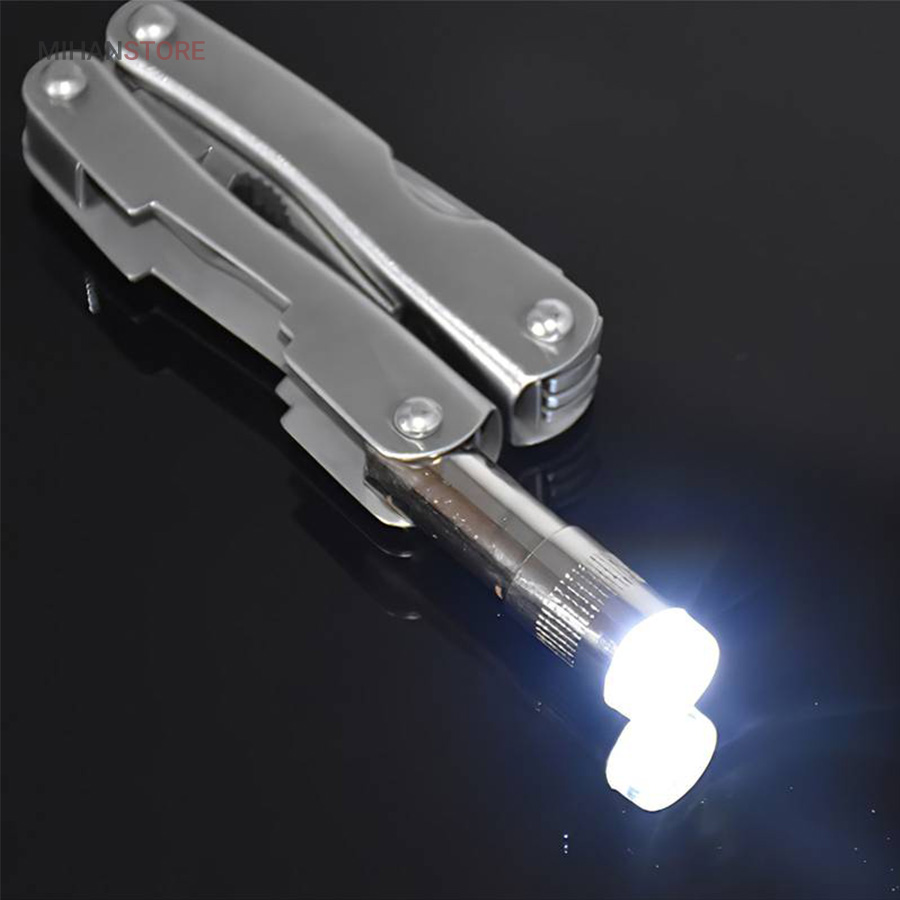 زمانی که قصد سفر ، شکار ، کوهنوردی یا کمپینگ و …… را دارید یک وسیله ی کاربردی که هم انبردست باشد و هم چراغ قوه و در عین حال توانایی انجام چندین کار مختلف را داشته باشد بسیار به کارتان خواهد آمد. انبردست تاشو چراغدار جیبی یک وسیله ی کاربردی چندین کاره میباشد که تنها ۷۰ میلی متر طول و ۱۳ میلی متر عرض دارد و بسیار بسیار کم حجم و سبک میباشدانبردست جیبی چراغدار چندین کاره دارای ابزارهای چراغ قوه ، چاقو ، اره ، پیچ گوشتی چهارسو  ، پیچ گوشتی دوسو و دربازکن میباشدجنس این انبردست تماما از الیاژ فلزی ضد زنگ میباشد و بسیار مقاوم و بادوام ساخته شده استاین انبر دارای ۱ چراغ LED نور سفید میباشد که با ۳ عدد باتری ساعتی کار کرده و به روش پیچی روش و خاموش میشودانبردست جیبی چراغدار چندین کاره مناسب برای شکار ، ماهیگیری ، سفر ، کوهنوردی و کمپینگ ، همچنین از این محصول میتوان به عنوان یک ابزار کاربردی مهم و مفید برای داخل خودرو نیز استفاده کرد.
