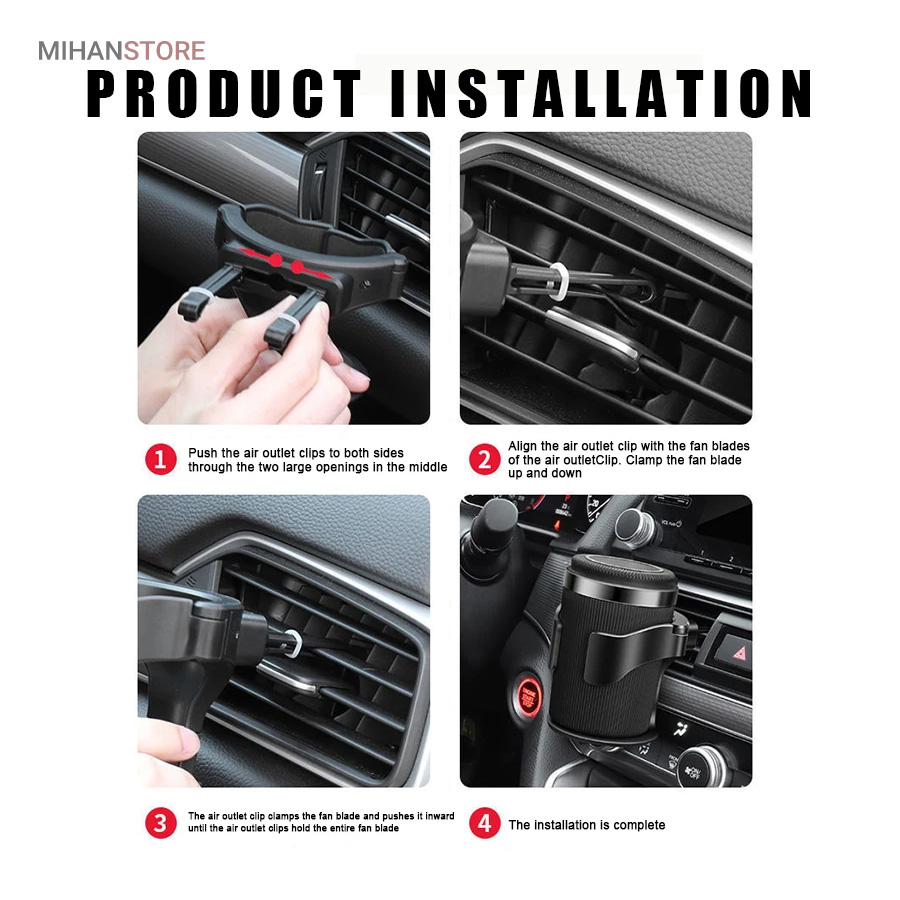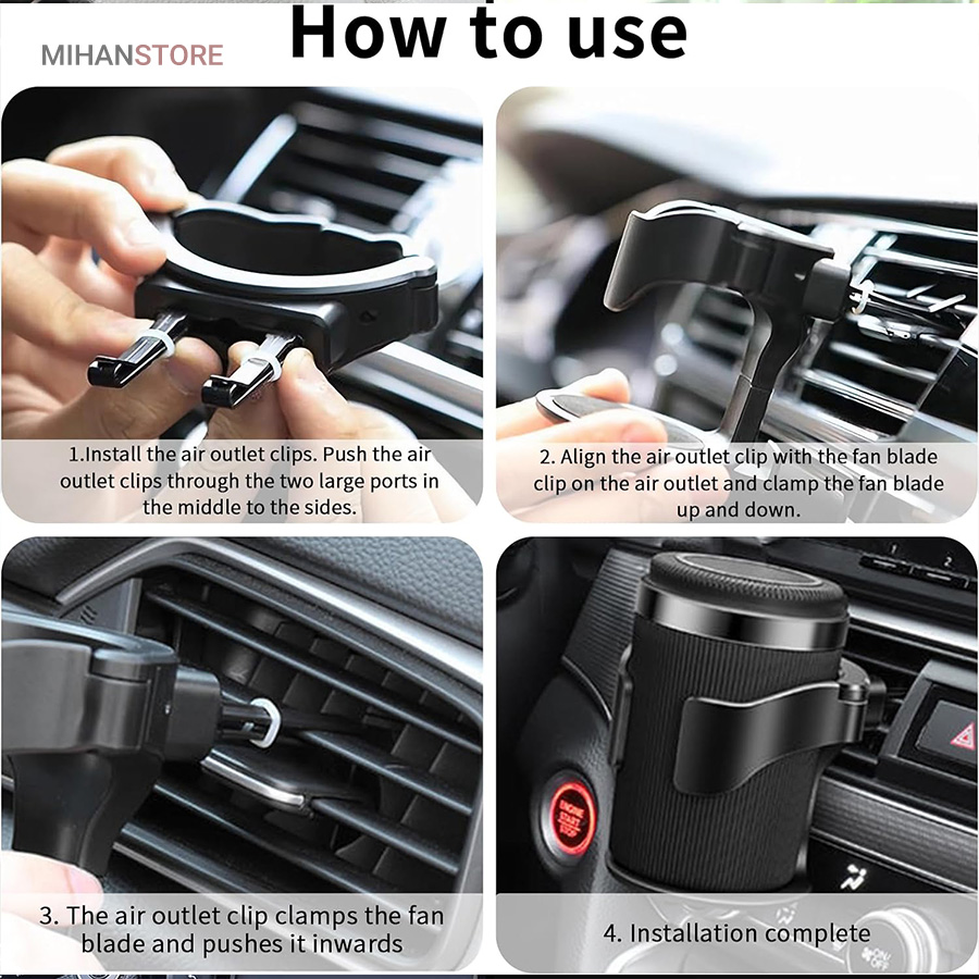 این هولدر یک محصول بسیار کاربردی است که می توان از آن به عنوان جای لیوان و جا سیگاری استفاده کرد، طراحی جمع شونده به شما امکان می‌دهد بطری‌های نوشیدنی کنسرو شده و دیگر فنجان‌های با قطر 12 سانتیمتر را زیر 500 میلی‌لیتر قرار دهید. و می‌توانید نوشیدنی خود را از طریق جریان هوای تهویه مطبوع خنک‌تر یا گرم‌تر کنید.