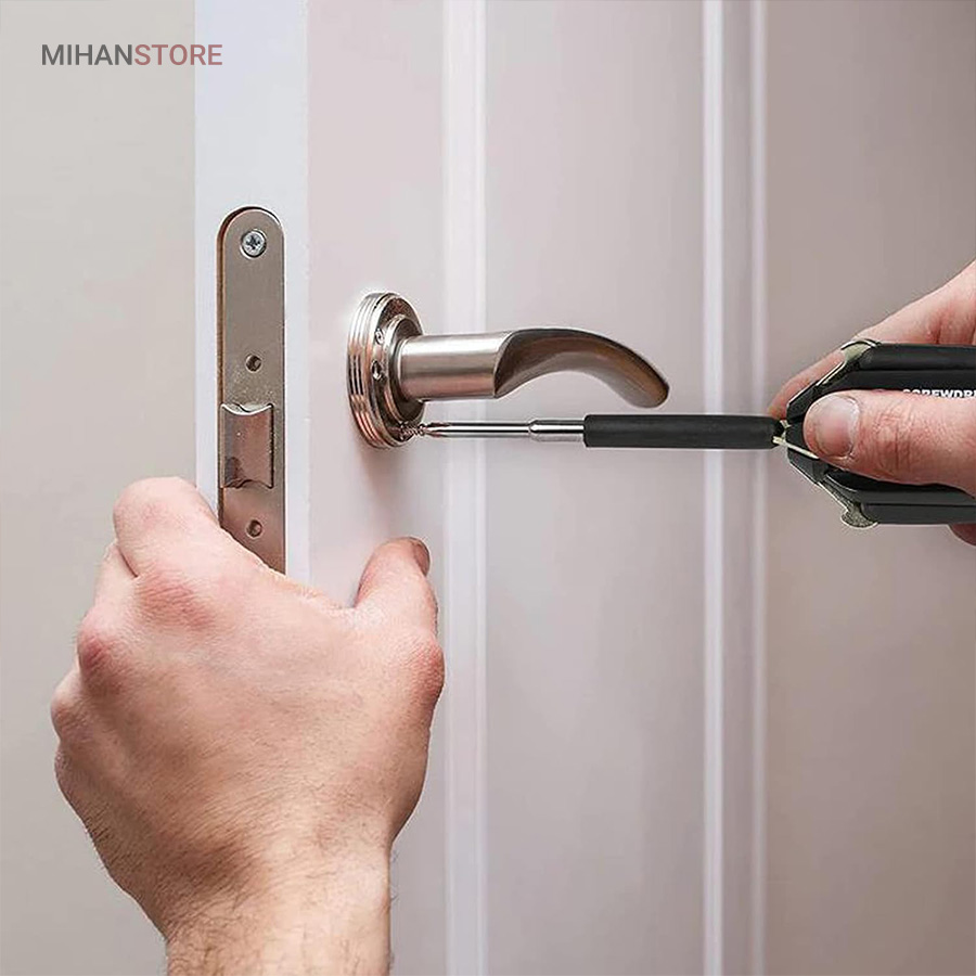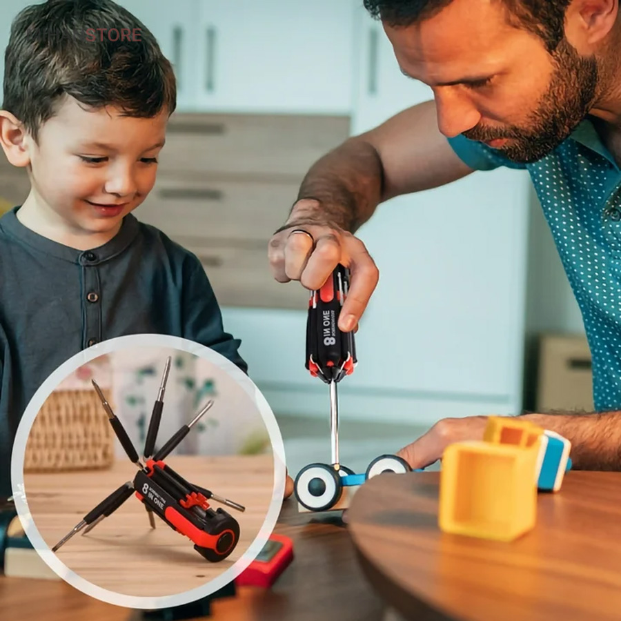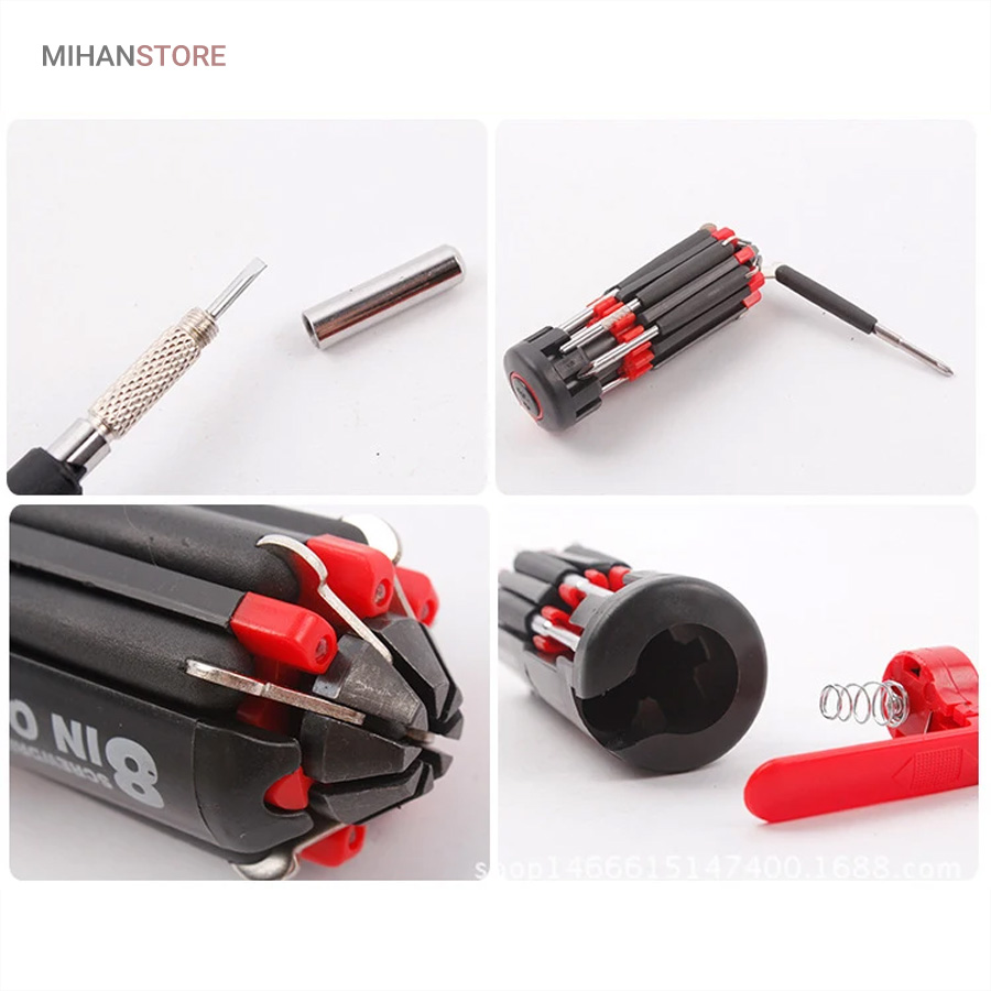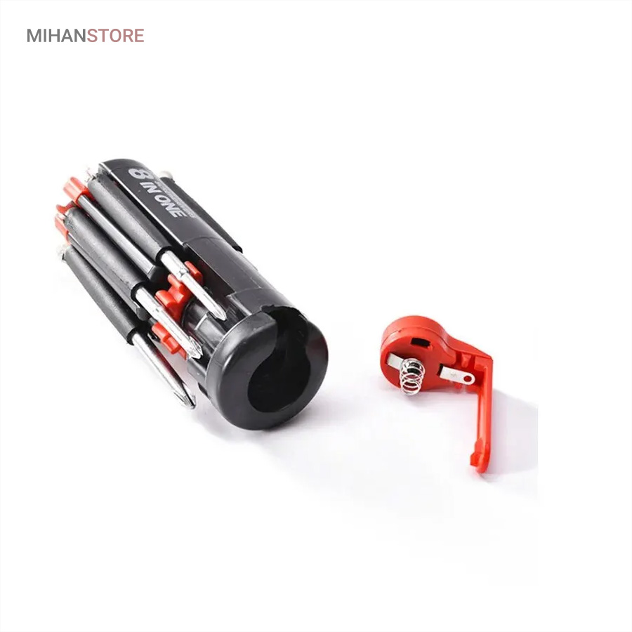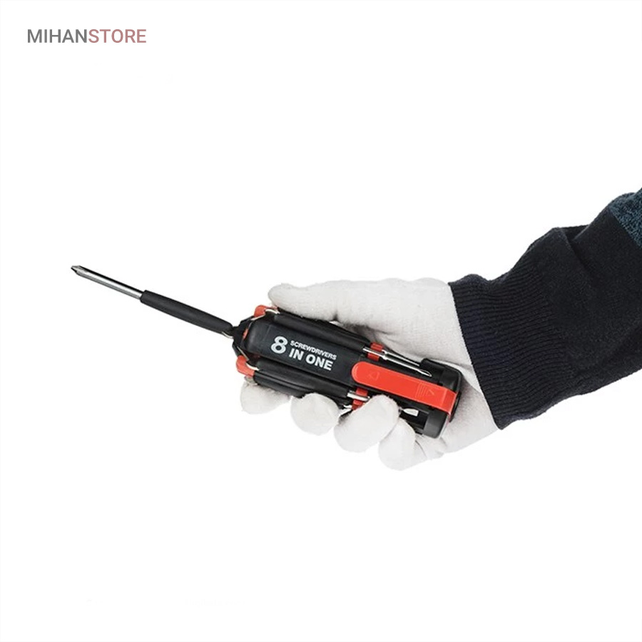 یک پیچ گوشتی به جای 8 پیچ گوشتی ، هشت پیچ گوشتی همه کاره .  پیچ گوشتی چند کاره و چراغ دار . نوع درجه یک ،  قابل استفاده داخل اتومبیل ، منزل و محل کار با 8 سر متفاوت مناسب برای تمام کارهای فنی . این پیچ گوشتی چراغ دار از جدید ترین و مناسب ترین پیچ گوشتی ها بوده که تابحال وارد بازار شده که به جای استفاده از 8 پیچ گوشتی شما می توانید از یک پیچ گوشتی 8 سر استفاده کنید.این پیچ گوشتی قابل حمل ، بدون نیاز به جعبه می باشد. پیچ گوشتی 8 سر جادویی چراغ دار قابل استفاده در محیطهای تاریک.پیچ گوشتی چند کاره و چراغ دار به همراه چراغ قوه برای کار کردن در محیط های تاریک نیز مناسب می باشد.
