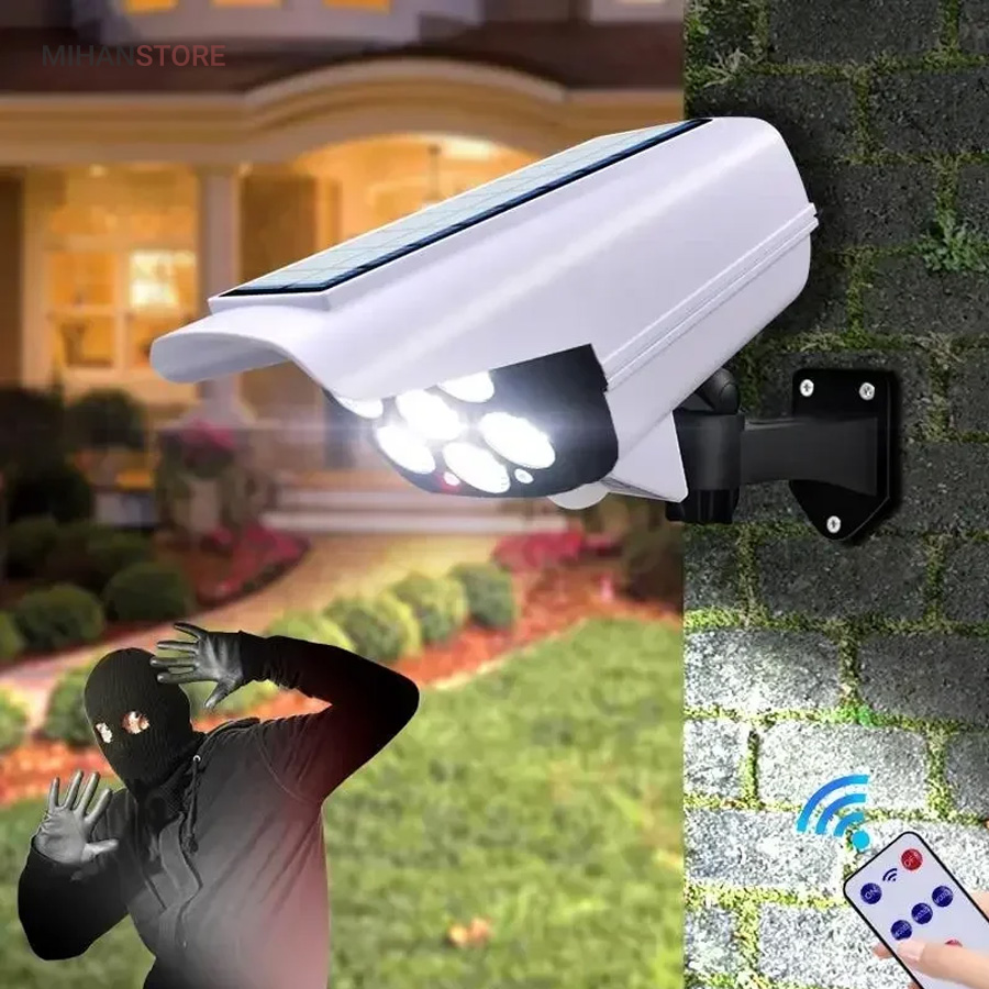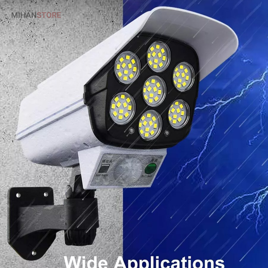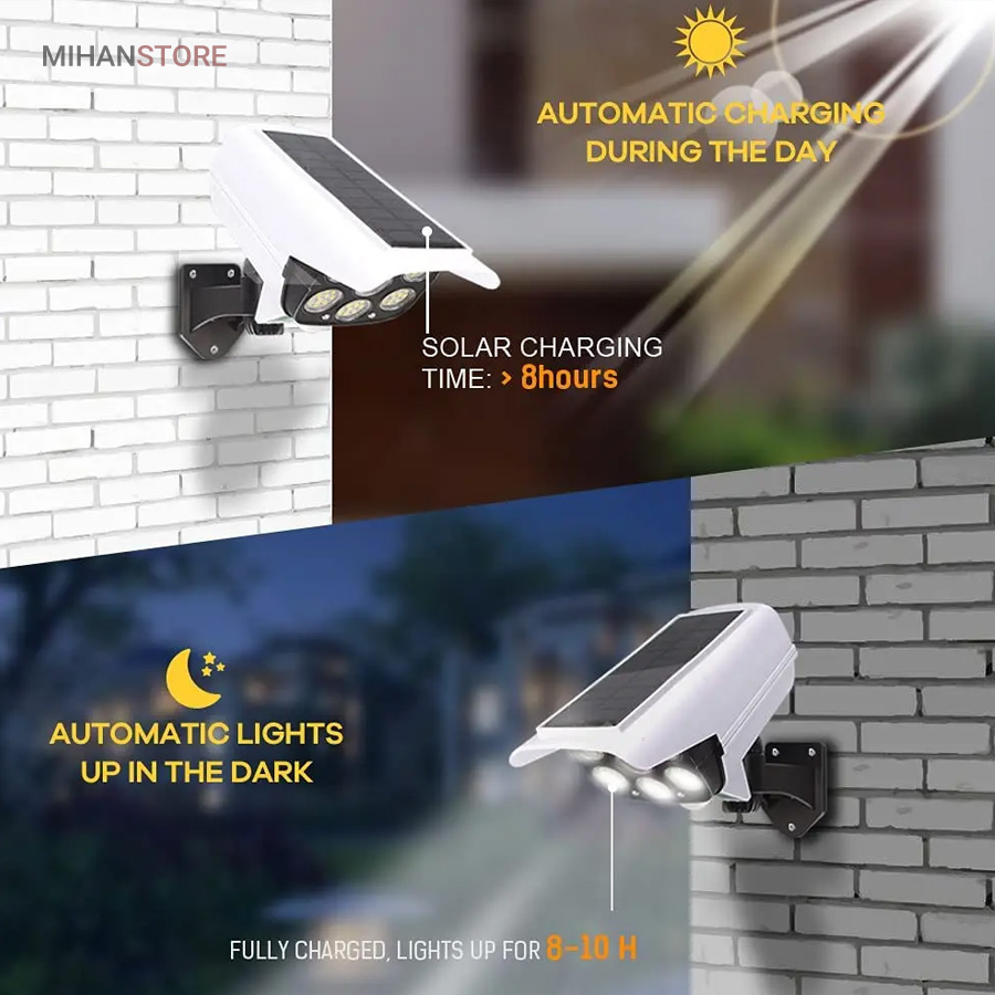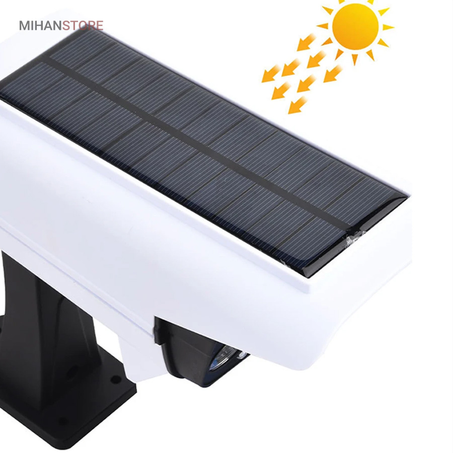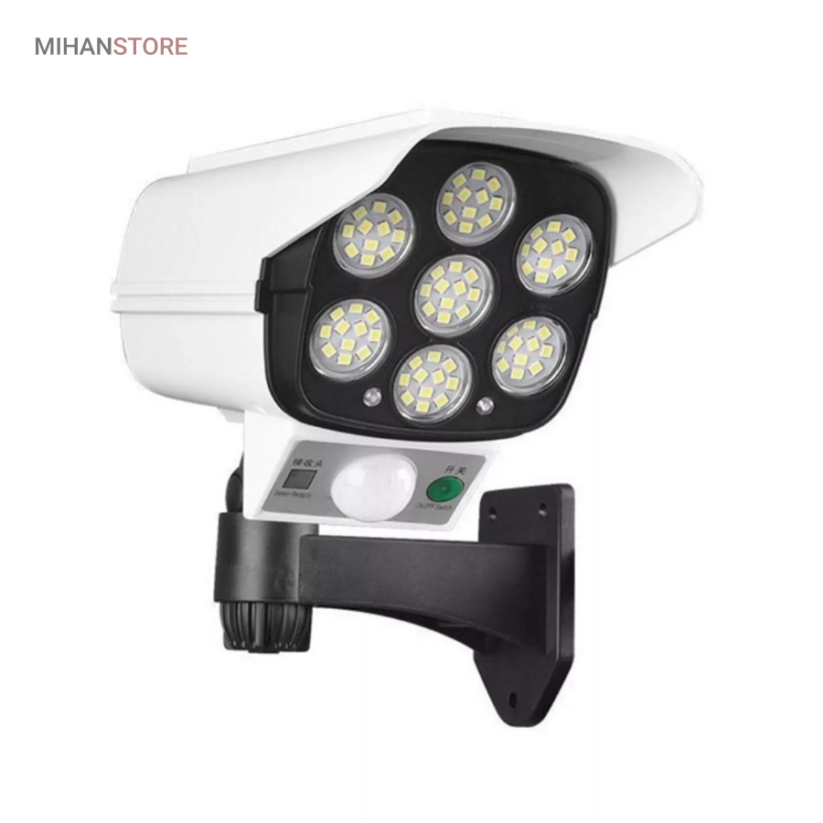 پروژکتور های خورشیدی طرح دوربین مدار بسته پروژکتور هایی هستند که حالت سیکوریتی دارند و حدودا بین 180 تا 200 وات نور تولید می کنند و شامل دو باتری لیتیومی 3.7 ولتی و پنل 3 واتی بزرگ هستند. دوربین های به کار رفته در این پروژکتور ها 2 باتری هستند و کیفیت بالاتری دارند در صورتی که دوربین های موجود در بازار به صورت تک باتری نیز وجود دارد. توانایی تابش 360 درجه دارند و پایه دارند. این نوع پروژکتور ها حتما باید زیر آفتاب باشند ولی در سایه نیز می توانند کار کنند اما نوری که ایجاد می کنند کمتر است و بازدهی کمتری دارند در این صورت باتری زودتر خراب می شود. بهتر است از این نوع پروژکتور ها در مکان های پر تردد استفاده شود. نور بسیار خوبی دارند و ارتفاع نصب آن ها بهتر است که بیش از 3 متر نباشد چرا که اگر سنسور PRD در ارتفاع بیش از 3 متر قرار گیرد حساسیت خود را از دست می دهد و قابلیتی که باید داشته باشد را ندارد. از روی پنل در این پروژکتور ها می توان متوجه خاموش یا روشن بودن آن شد به این صورت که  مدار هایی درون آن وجود دارد که با تغییر ولتاژ از پنل و صفر شدن پنل، شب شدن یا تاریک شدن تشخیص داده می شود یعنی سنسور پتانسیلی دارند و همچنین دارای ریموت هستند. این نوع از پروژکتور ها را می توان زمان بندی کرد. این پروژکتور ها از پر فروش ترین جنس ها هستند.این یک لامپ دیواری خورشیدی با طراحی ظاهری دوربین مداربسته شبیه سازی است که می تواند در مکان های مختلف مانند دروازه ، راهرو ، حیاط و غیره نصب شود.