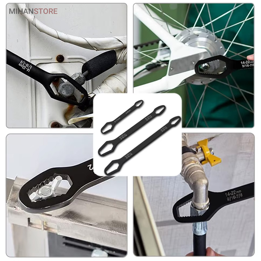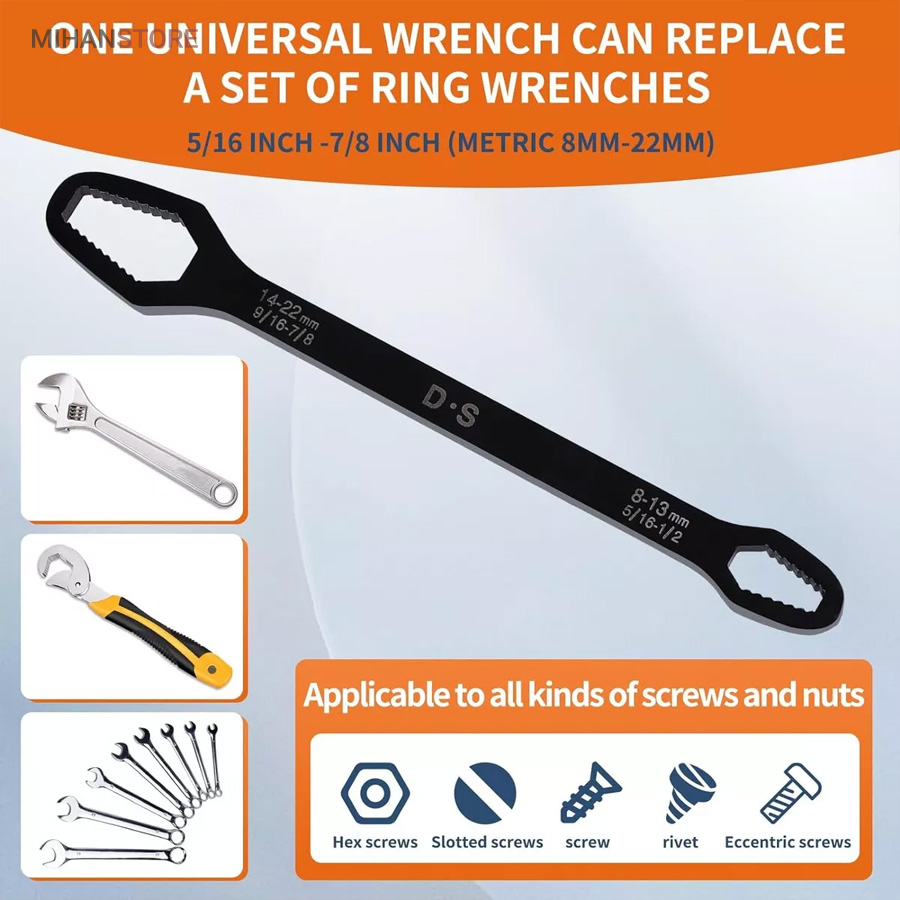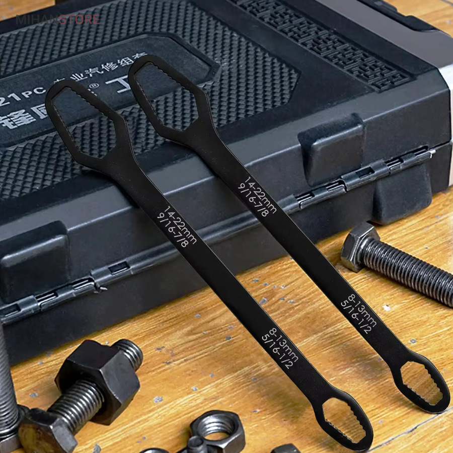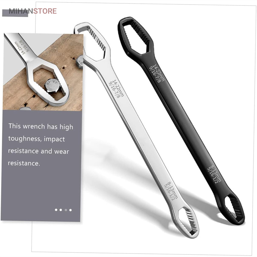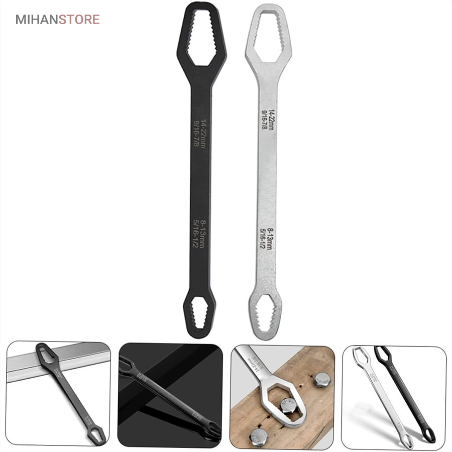 آچار دو سر رینگی همه کاره 8-22 مشکل بیشتر عاشقان ابزار و تمام فنی کاران را حل کرده است ، همیشه همراه داشتن یک کیف ابزار کامل بسیار دشوار و سنگین هست و در بیشتر مواقع آچار ها بیشترین وزن یک کیف ابزار به خود اختصاص می دهند ، آچار همه کاره دوسر رینگی 8-22 با دارا بودن 14 سایز از مهره بهترین جایزین ست های سنگین آچار های رینگی می باشند. با خرید آچار همه کاره دوسر رینگی دیگر از ناقص شدن آچارهای خود در زمان جابجایی کیف ابزار آسوه هستید، نیازی به حمل تعداد زیاد آچار ندارید و تنها یک آچار برای شما کفایت می کند. آلیاژ آچار همه کاره دوسر رینگی 8-22 از بالاترین کیفیت فولاد ساخته شده تا در برابر رطوبت و سایش مقاومت لازمه را داشته باشد. بهترین گزینه برای داخل ماشین  و کسانی که کمپ می کنند یا دوچرخه سوارانی که فضای کمی برای حمل کیف ابزار های بزگ و پر سروصدا ندارند می باشد .