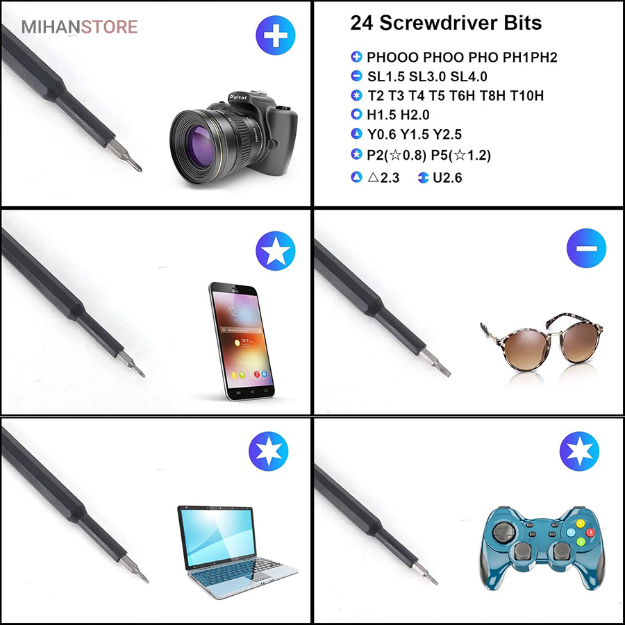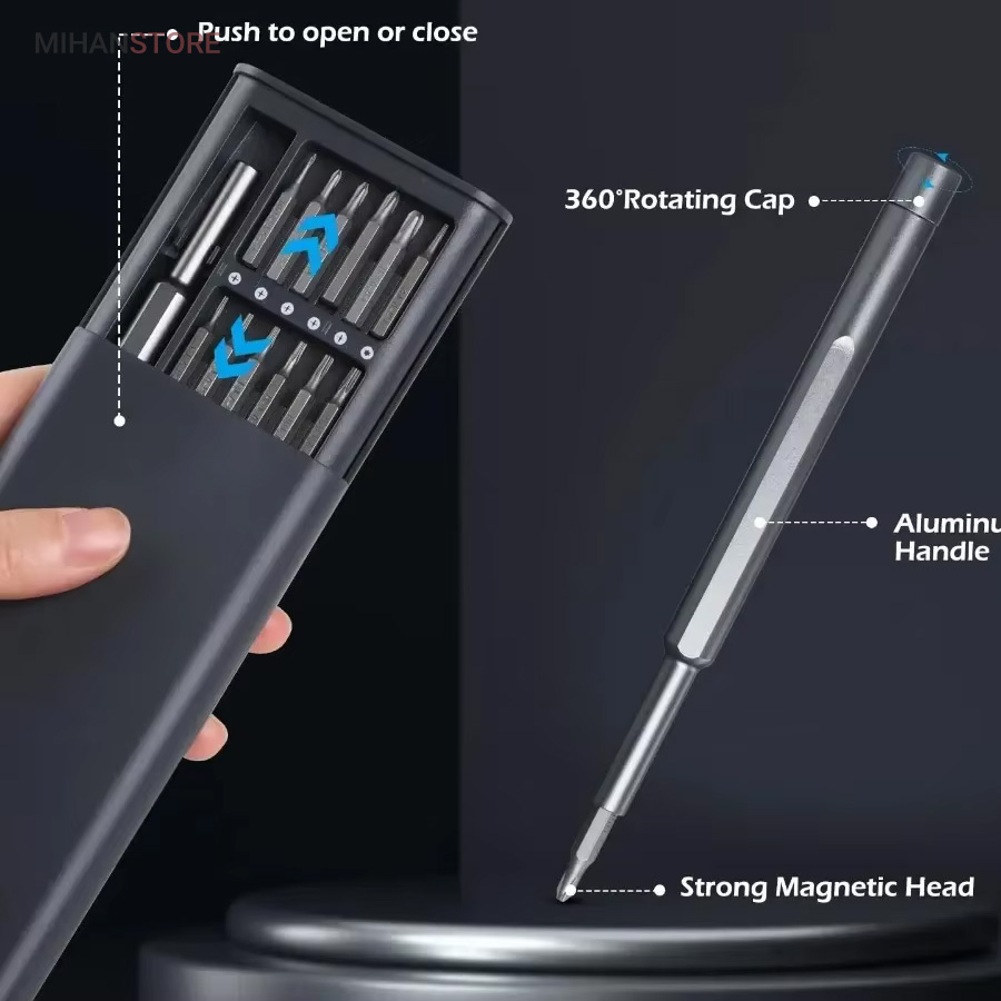 مجموعه پیچ گوشتی 25 پارچه حرفه ای دارای موتور الکتریکی هستند که در داخل آن موجب چرخش بیت یا نوک مخصوص پیچ‌ها می‌شود. این نوک‌ها بسته به نیاز می‌توانند با انواع مختلف پیچ‌ها سازگاری داشته باشند، مانند پیچ‌های صلب، پیچ‌های مغناطیسی، پیچ‌های صنعتی و پیچ‌های میکرومتریک. پیچ گوشتی‌ها علاوه بر کاربردهای تعمیراتی و نصبی، برای تولیدات صنعتی انبوه هم بسیار کارآمد هستند. این ابزارها می‌توانند برنامه‌پذیر و تنظیم شونده باشند و باعث افزایش سرعت کار و صرفه‌جویی در زمان و انرژی شوند. این محصول مناسب کار با گوشی موبایل، عینک، وسایل کامپیوتری، ساعت، اسباب بازی، دوربین عکاسی و… میباشد.