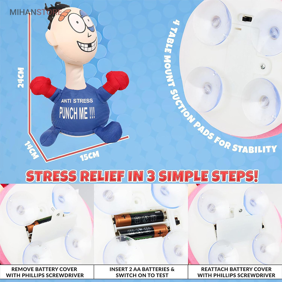 یک عروسک سرگرم کننده برای کودکان و حتی برای بزرگسالان. این عروسک کتک خور منحصر به فرد قطعا یکی از جدید ترین و جالب ترین عروسک هایی خواهد بود که تا به امروز با آن مواجه شده اید. این عروسک حیرت انگیز به راحتی می تواند تا ساعت ها کودکانتان را سرگرم کند و حتی می تواند هرازگاهی موجب پر شدن اوقات فراغت شما شود. عروسک مشت خور یک اسباب بازی سرگرمی از جنس پولیش و پارچه میباشد. پاهای عروسک دارای 4 عدد چسبونک است که به زمین میچسبد و شما میتوانید با مشت زدن به صورت و بدن این عروسک استرس، عصبانیت و انرژی منفی خود را تخلیه کرده و به آرامش برسید. گردن عروسک مشت خور حالت فنری ارتجاعی دارد که با هربار ضربه به سر به جای خود باز میگردد علاوه بر این ها با هربار مشت زدن به عروسک صدا دادو فریاد از خود تولید میکند. ارتفاع عروسک_مشت_خور ۲۵سانت بوده و با دو باتری قلمی شروع به کار میکند.