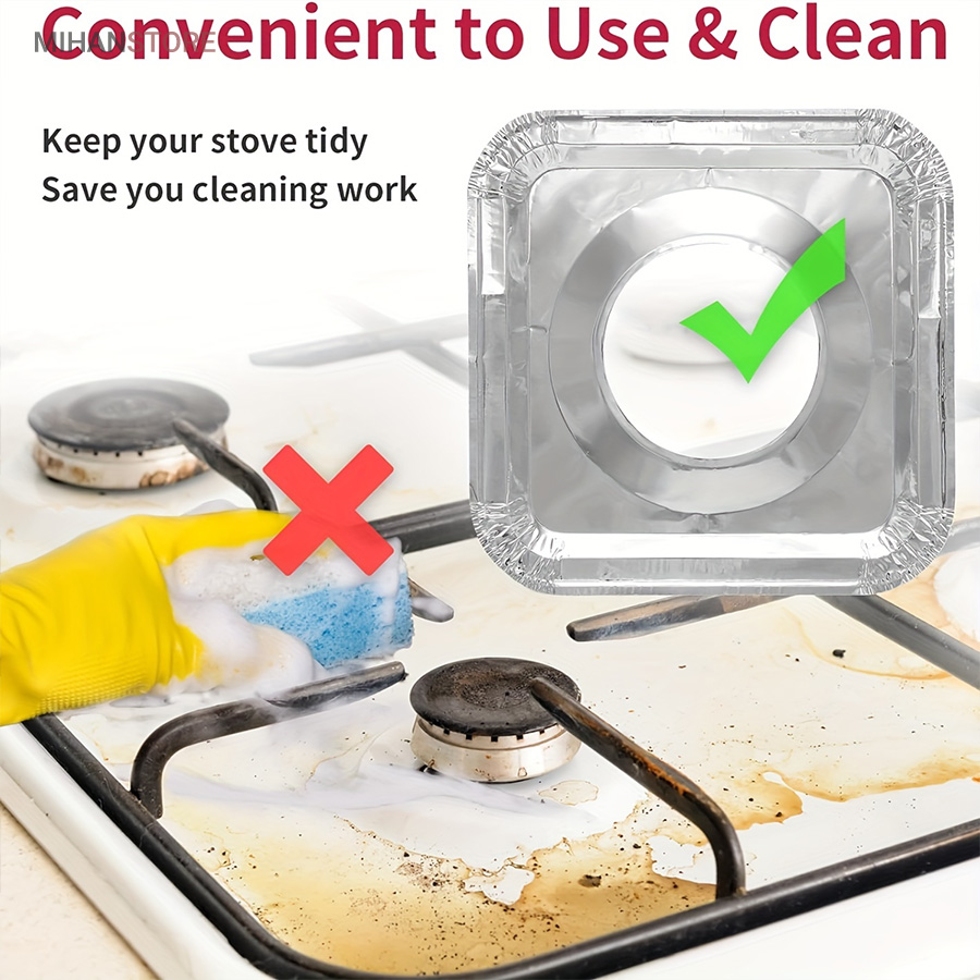 نظافت گازی که فویل محافظ آلومینیومی بر روی آن نصب شده است بسیار کار آسانی است فقط کافی است یک دستمال را نمناک کرده و روی فویل قالبی گاز را با آن تمیز کنید ، اگر از فویل آلومینیومی استفاده نشده باشد نظافت گاز کاری بسیار طاقت فرساست زیرا بر روی صفحه گاز چربی ها انباشته شده و با حرارتی که میبیند سفت شده و میچسبد ، برای تمیز کردن این آلودگی ها نیاز به انواع شوینده ها پیدا میکنید که برای صحفه گاز بسیار مضر میباشد و عمر آن را به شکل قابل توجهی کاهش میدهد ، با کمترین هزینه و خرید یک پک 10 عددی محافظ اجاق گاز میتوان از پوسته شدن و خرابی صفحه اجاق جلوگیری کرد.