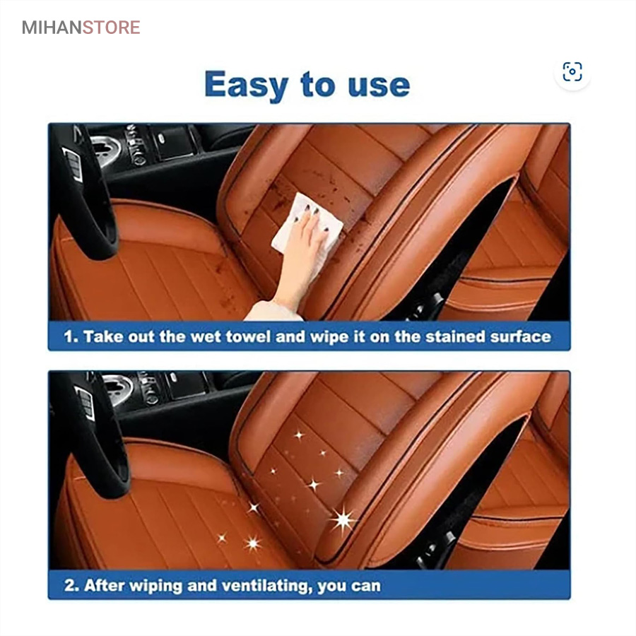 دستمال مرطوب ضد گردو غبار مناسب تمیز کردن و براق کردن تمام داخل خودرو از داشبورد و کنسول گرفته تا روکش صندلی ها از جنس فوم، چرم یا روکش پارچه ای را کاملا تمیز و براق کنید همچنین به دلیل فرمولاسیون ویژه این محصول سطوح داخل خودرو شما تا مدت ها گردوغبار را به خود جذب نمیکند. انتخابی عالی برای تمیز کردن و براق کردن انواع کیف، کفش، کمربند و محصولات چرمی است. این دستمال‌ها با فرمولاسیون ویژه، گرد و غبار و لکه‌ها را به‌راحتی پاک کرده و به چرم و سطوح مصنوعی جلوه‌ای تازه و درخشان می‌بخشند.