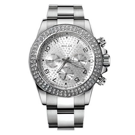 ساعت اسپرت طرح رولکس مارک Walar یک ساعت فوق العاده شیک و با کیفیت می باشد که به تازگی به بازار عرضه شده است و طرفداران بی شماری را در این مدت کوتاه به دست آورده است. ویژگی این ساعت رنگ زیبای آن و همچنین نگین های درخشان حک شده در اطراف ساعت می باشد که این مساله شرایط ست شدن با هر لباسی را فراهم می کند. این ساعت در بسته بندی فوق العاده شیک و اورجینال با 6 ماه گارانتی تعویض برای اولین بار در ایران توسط فروشگاه میهن استور عرضه می شود.