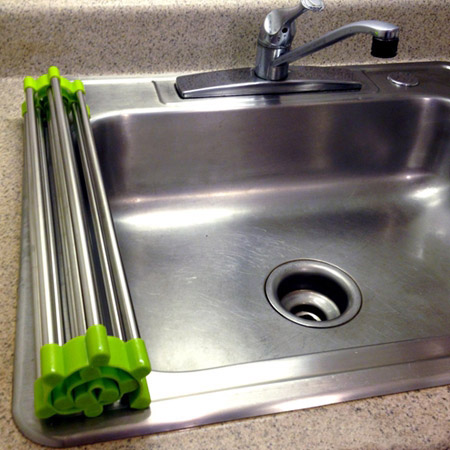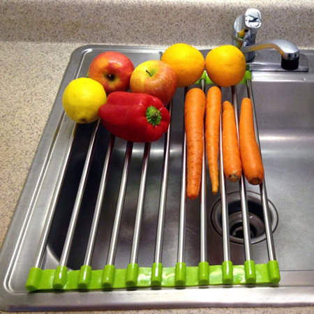 آبکش سینک جادویی محصولی خاص با کارایی بالا بوده که مورد استفاده در هر خانه ایی می تواند باشد. خانم های گرامی موقع شستن ظرف یا میوه یا تمیز کردن ماهی و ... فقط کافیست این محصول را بر روی سینک آشپرخانه پهن کنید. بعد از خشک شدن میوه یا ظروف می توانید محصول را به راحتی تا کرده و جمع کنید. این محصول از استیل ضد زنگ تهیه شده و بسیار مقاوم و با کیفیت می باشد.