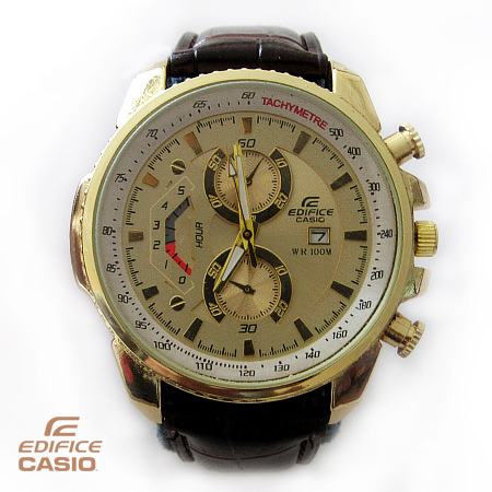 ساعت مچی Casio EF-558 با بند چرم یکی از جدیدترین مدل های عرضه شده کمپانی معتبر کاسیو می باشد. این ساعت دارای بند چرم بسیار با کیفیت و صفحه شیشه ای ضدخش می باشد که در 2 رنگ بند مشکی و قهوه ای و همچنین صفحه طلایی و مشکی عرضه شده است. این ساعت دارای تقویم روز شمار می باشد و تا 80 درصد نیز ضد آب است. هم اکنون می توانید ساعت مچی کاسیو EF-558 بند چرم را همراه با جعبه شکیل و 6 ماه گارانتی تعویض با قیمت استثنایی از فروشگاه میهن استور سفارش دهید.