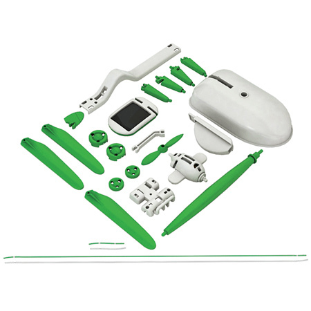 این کیت متشکل از قطعاتی است که طبق نقشه راهنما یکی از دستگاههای داخل آن را بر حسب انتخاب میسازید و سپس با استفاده از سلول های خورشیدی آن را به حرکت در می آورید. سادگی مونتاژ قطعات با استفاده از نقشه راهنما وسیله ای جالب و شگفت انگیز خلق میکند. استفاده از این کیت به جهت داشتن قطعات کوچک برای سنین پایین تر از سه سال توصیه نمی شود.
