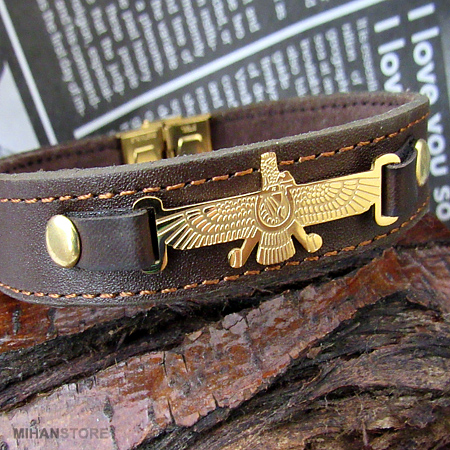 میهن استور - خرید پستی دستبند چرم طرح فروهر