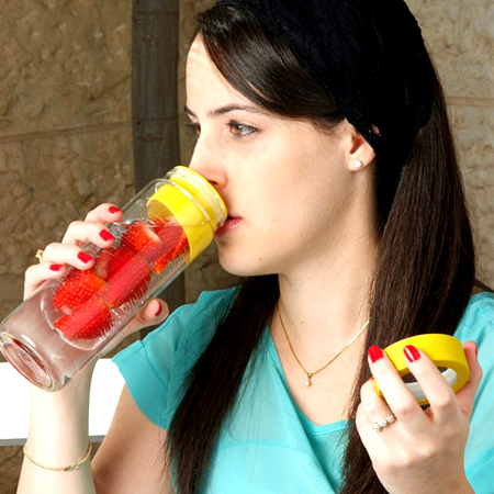 بطری آب با اسانس میوه Detox Water محصولی جدید با طراحی بسیار عالی و خلاقانه است که توانسته است خیلی زود به محبوبیت بسیار بالایی رسیده و پرطرفدار نیز شود همانطور که از نام محصول قمقمه آب با اسانس میوه دتوکس مشخص است در طراحی این محصول یک فضای مناسب برای قرار گیری اسانس میوه و سبزیجات قرار داده شده است که شما می توانید میوه هایی مانند لیمو و توت فرنگی و خیار و سیب و نعنا و غیره را به آن اضافه کنید و سپس آب را به قمقمه اضافه کنید و با اینکار شما می توانید آب را با طعم و عطری که دوست دارید بنوشید. بطری آب با اسانس میوه دتوکس علاوه بر ویژگی های گفته شده دارای کیفیت ساخت بسیار بالایی نیز می باشد و از بهترین مواد اولیه ساخته و طراحی شده است. بطری آب با اسانس میوه دارای فضای بسیار مناسبی نیز برای نگه داری آب بوده این محصول یک همراه عالی برای رفع تشنگی و همچنین انتخابی بسیار مناسب برای ورزشکاران و رفع تشنگی در هنگام انجام ورزش می باشد.