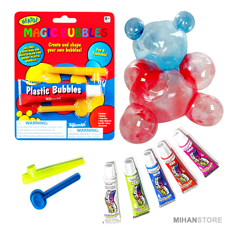 مجیک بابل Magic Bubbles حباب های پلاستیکی هستند که بهم می چسبند ولی قابل لمس هستند و نمی ترکند! انعطاف پذیری و حالت الستیک این بادکنک های دوست داشتنی باعث شده که یک سرگرمی جذاب برای بچه ها و نوجوان ها باشه.