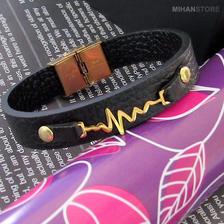 میهن استور - خرید پستی دستبند چرم طرح ضربان قلب