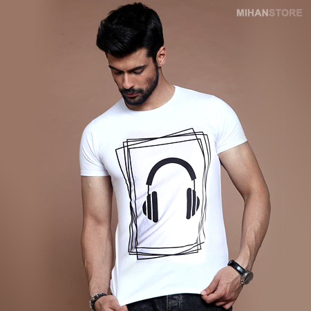 میهن استور - خرید پستی تی شرت مردانه طرح هدفون (سفید)