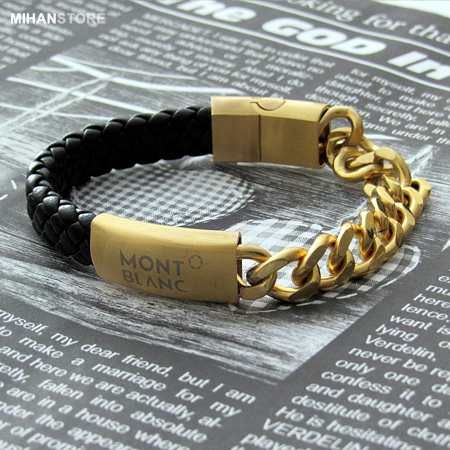 دستبند چرم و استیل طرح Mont Blanc نمونه‌ای از زیورهای ظریف و در عین حال پرطرفدار از جانب همگان است که با اکثر رنگ‌های لباس همخوانی داشته و در عین حال متفاوت دیده می‌شود. این دستبند فوق العاده شیک از یک لایه چرم و یک لایه زنجیر استیل و نماد زیبای برند Mont Blanc با رنگ های لوگو مسی، طلایی و مشکی عرضه شده است.